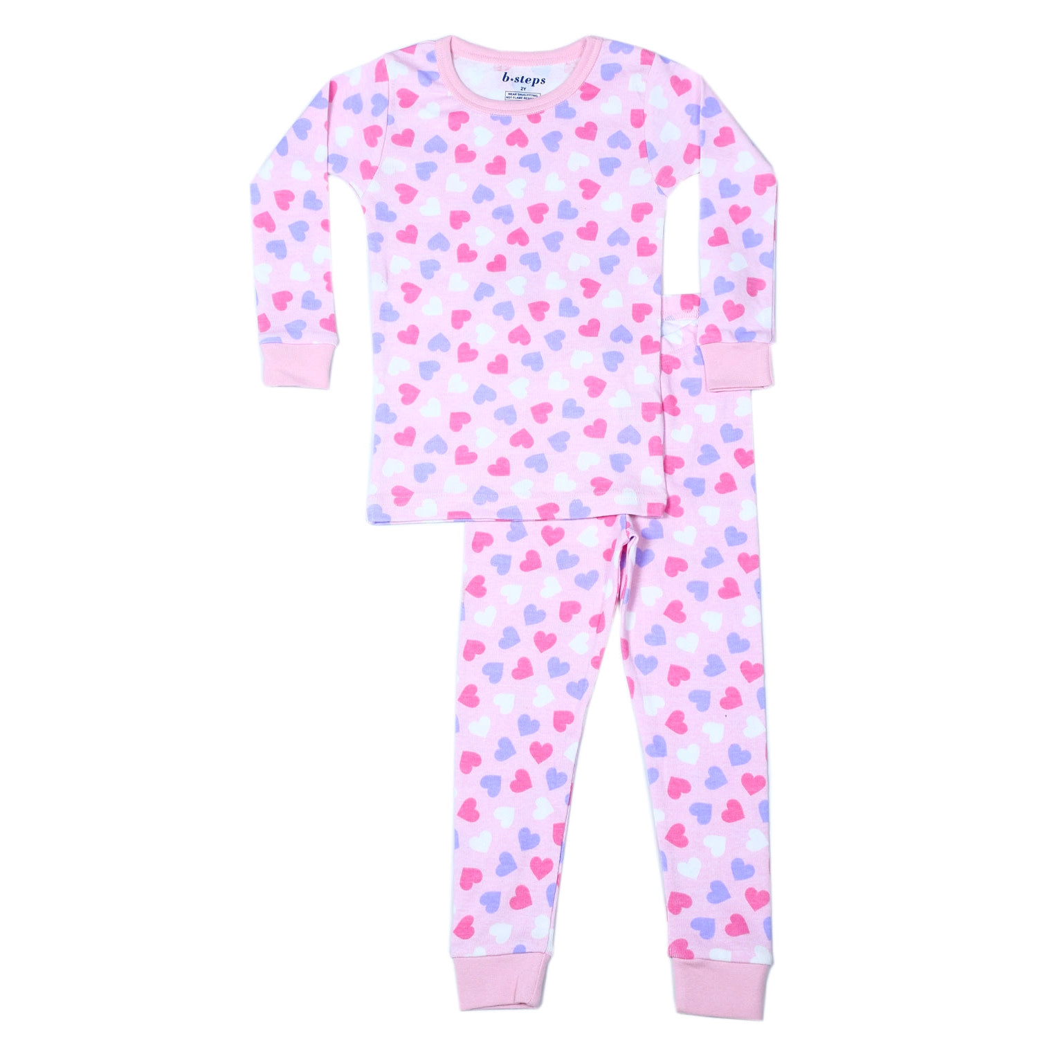 B Steps Kids Pajamas in Tossed Hearts Print. 100% Cotton.