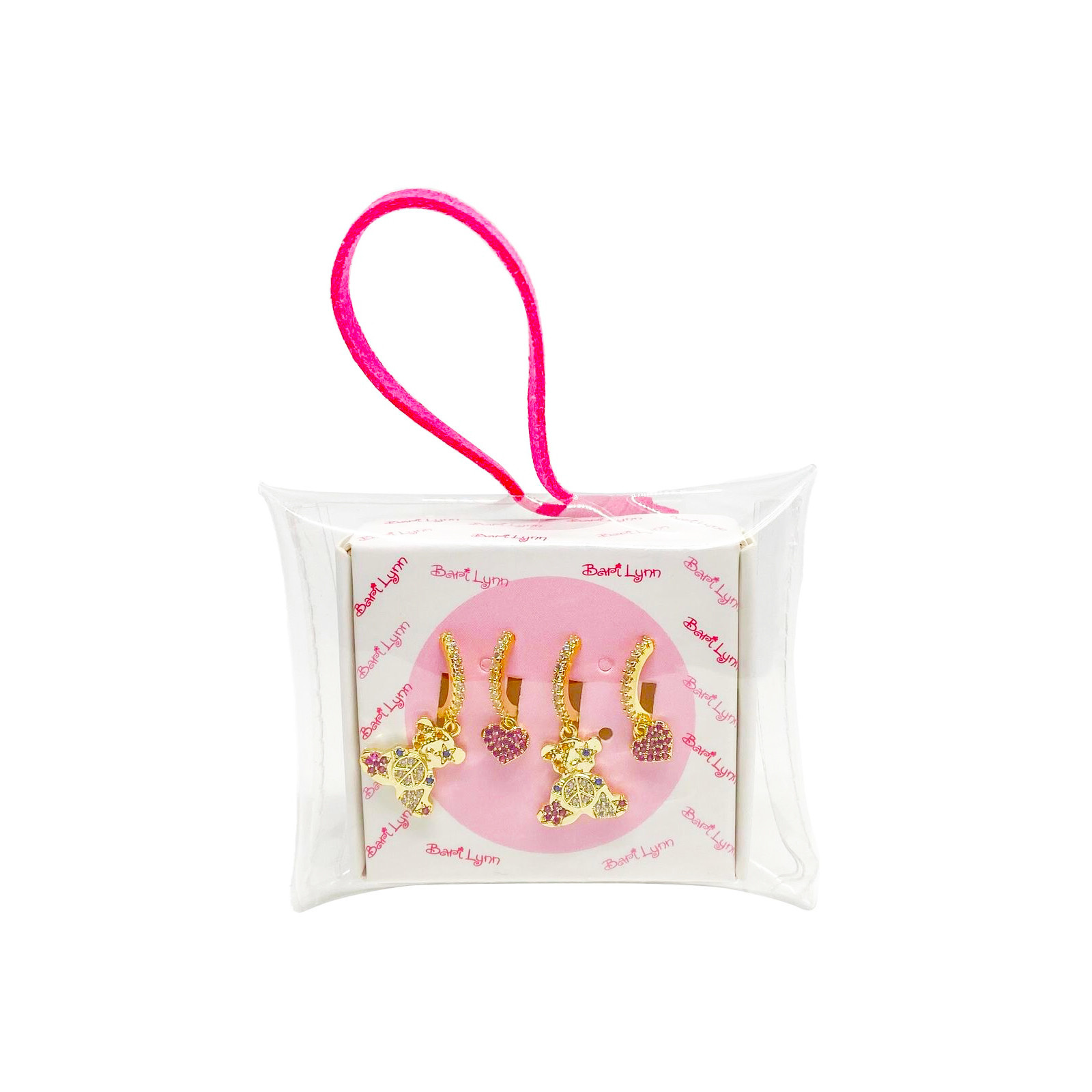 Turn heads with this quirky set of 2 hoop earrings, featuring delicate hearts and playful teddy bears. These unique accessories add a touch of whimsy to any outfit.
