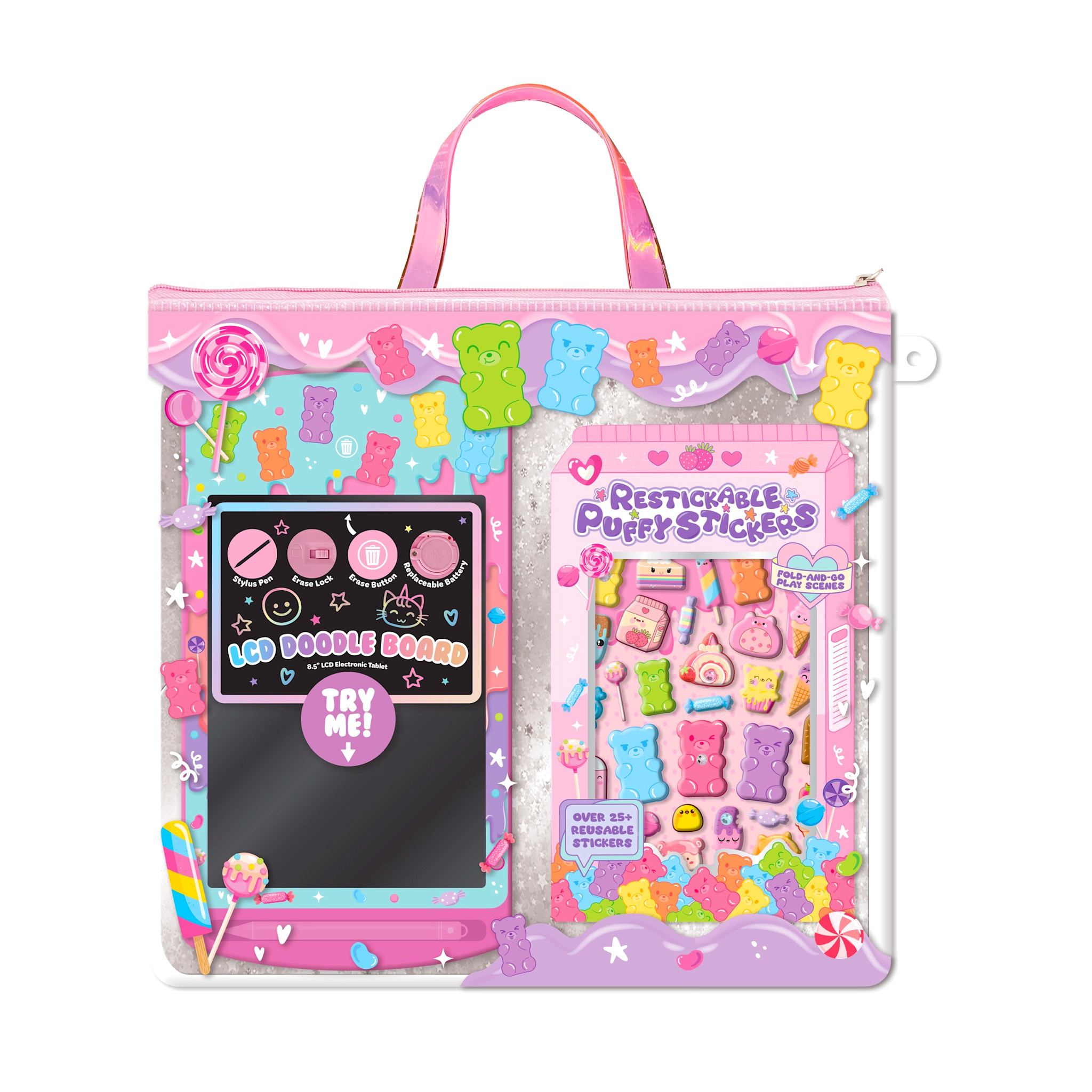 Create an accountThe perfect solution for on-the-go activity, get endless entertainment and fun with this portable device and accessories. Contains: 1 LCD Drawing Pad 1 Sheet of Puffy Stickers 1 Reusable PVC Bag 1 Play Scene