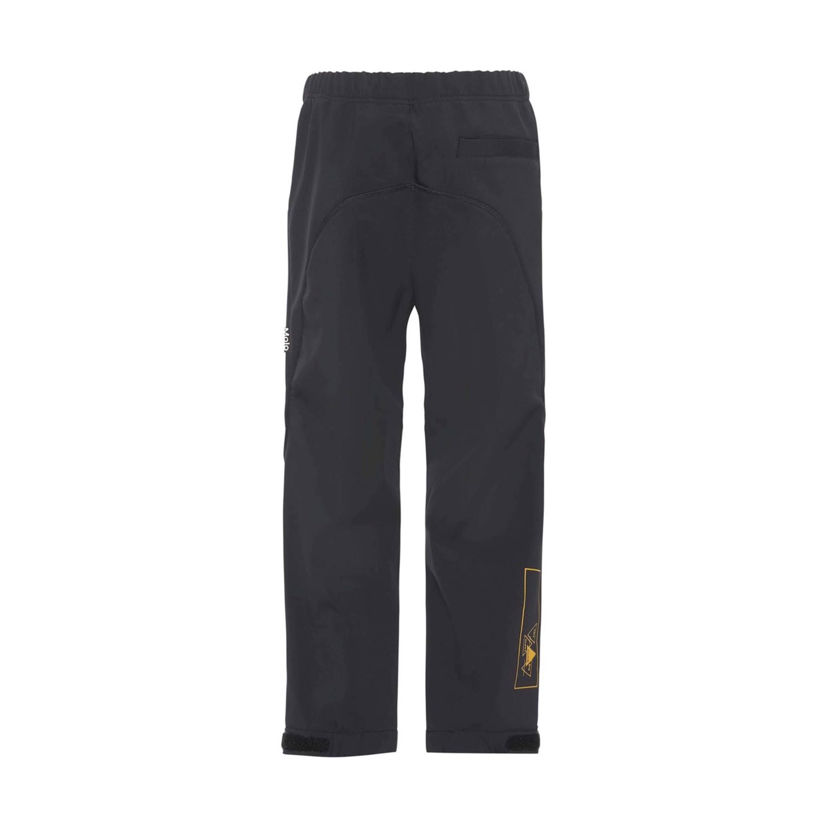 Haemon is Molo's new softshell trousers in black. They are extremely comfortable and at the same time practical. The trousers have an adjustable waist, which means they fit all children perfectly. The outer fabric is windproof, waterproof and breathable.