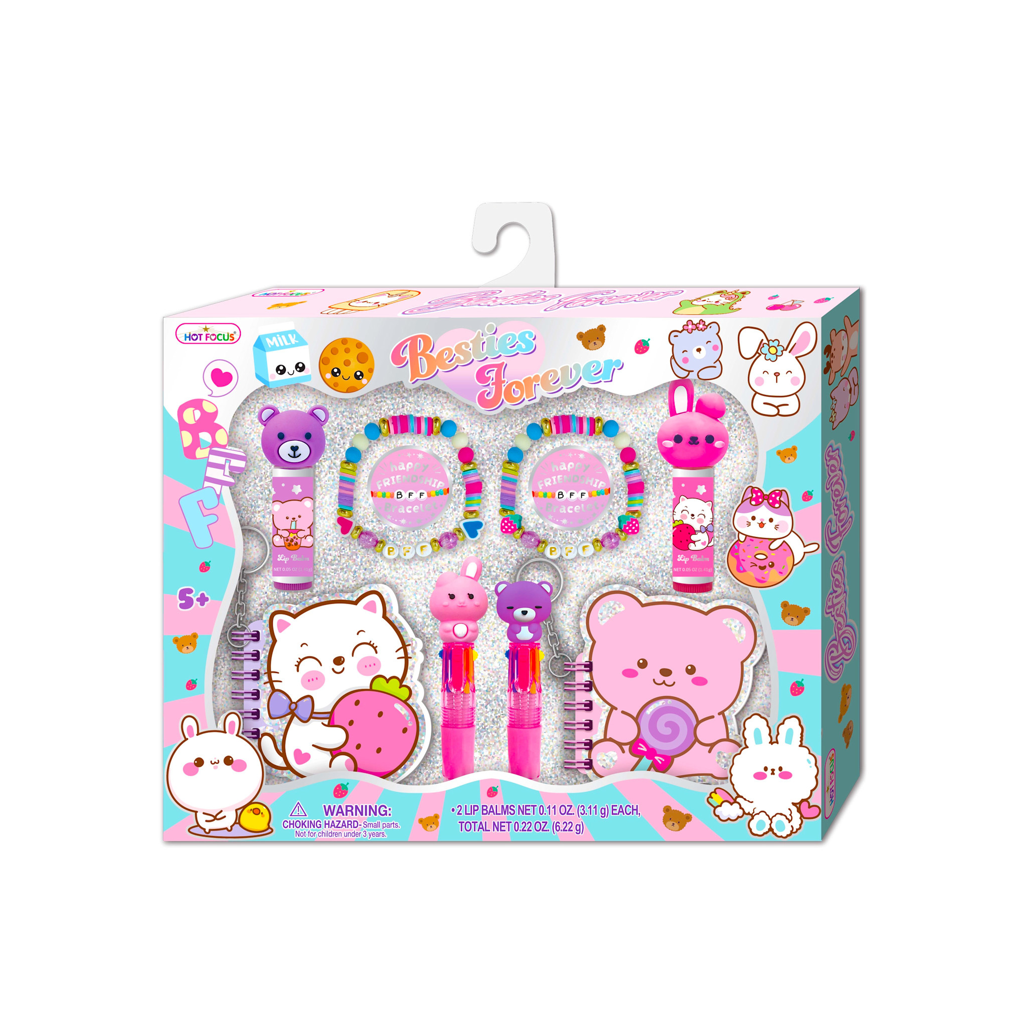 Hot Focus Beasties Forever, Critters Contains: 2 Novelty Lip Balms, 2 Matching Bracelets, 2 Mini Keychains Notebooks, 2 (4 Color) Pens with Novelty Toppers,