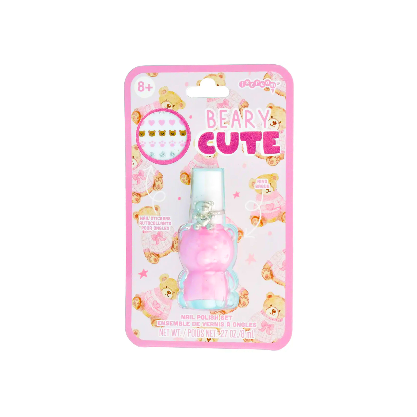 Beary Cute Nail Polish & Ring Set by Iscream. Includes nail polish, ring, and nail stickers.