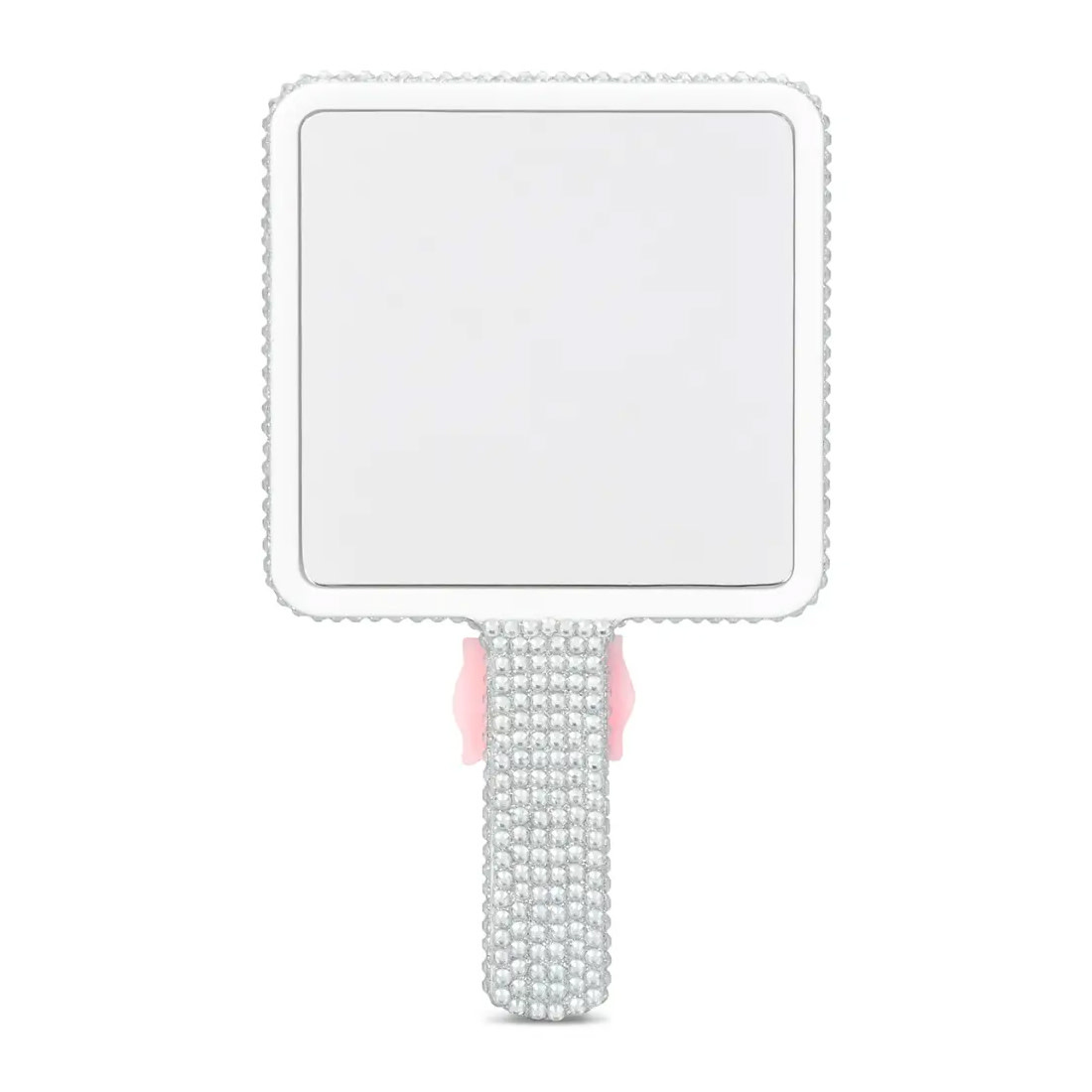 Charming Rhinestone Mirror by Iscream. Rhinestone and Charm detail hand mirror. Measures: 6 x 9 x 1 inches.
