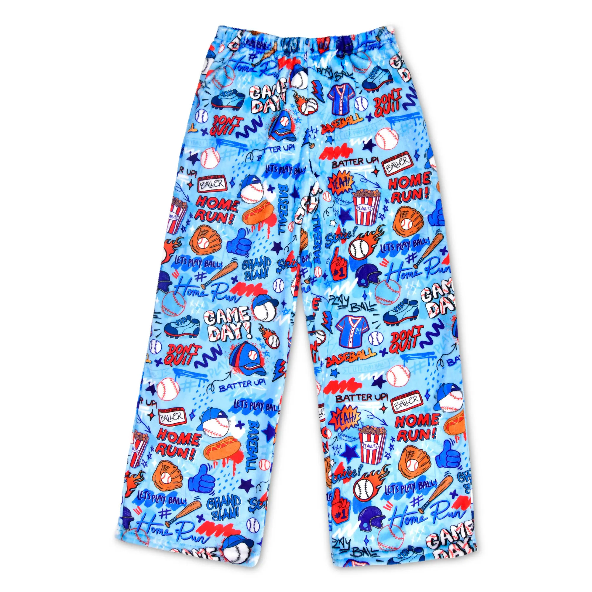 Corey Paige Ball Game Plush Pants by Iscream. 100% polyester. Front pockets. Fabric-covered waistband. Machine washable.