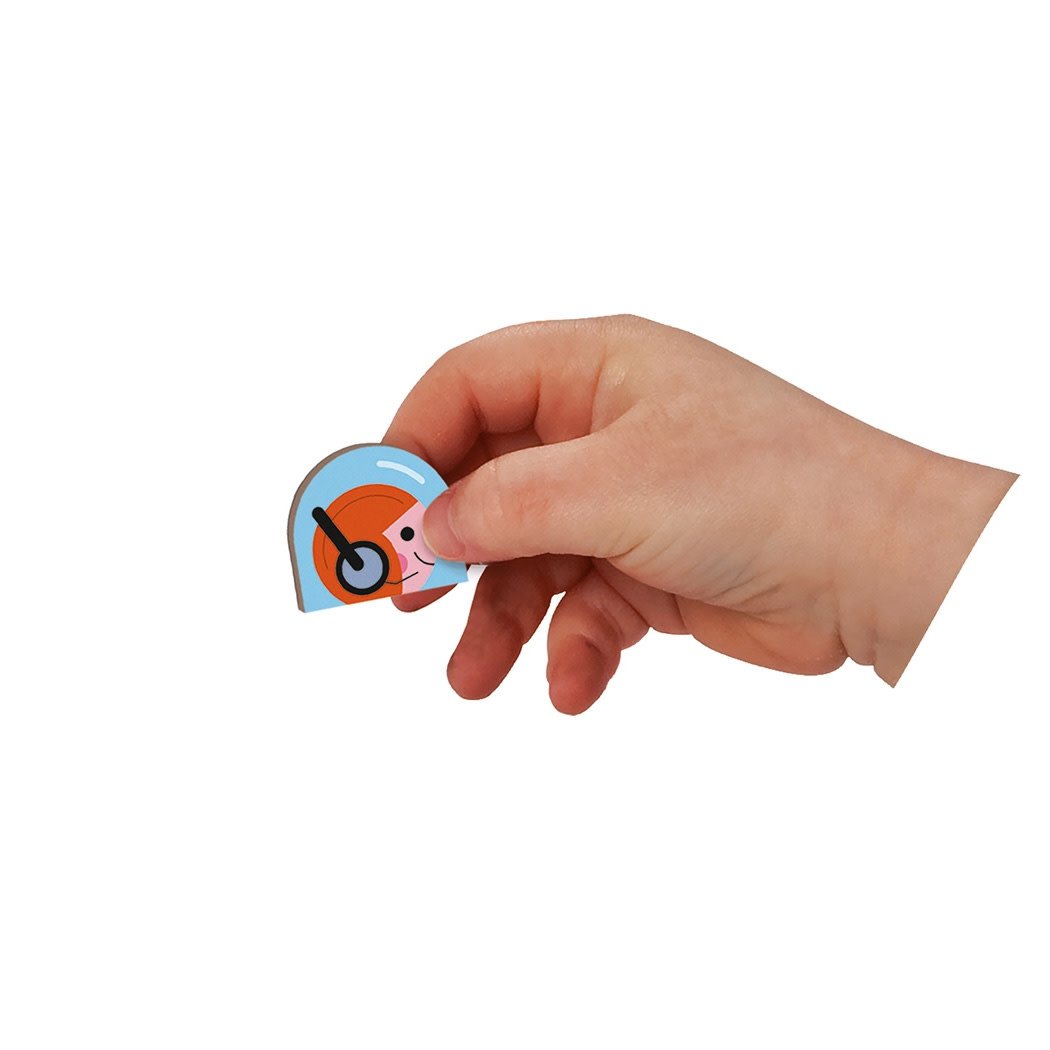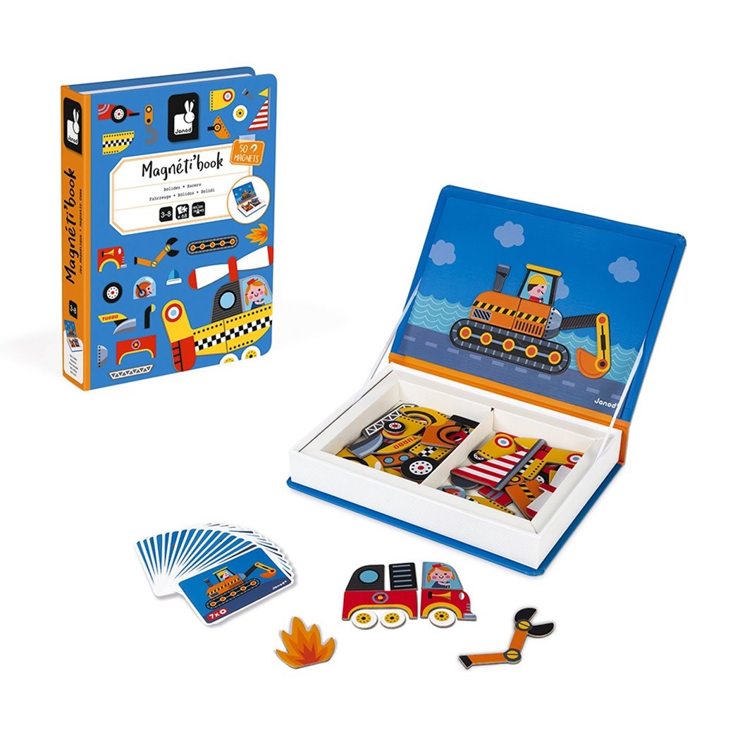Magnetic educational game in cardboard on the vehicles theme. Composed of 50 magnets and 18 cards. Once the book is opened, the aim is to make the stage the same vehicle as indicated on the card thanks to the magnets.