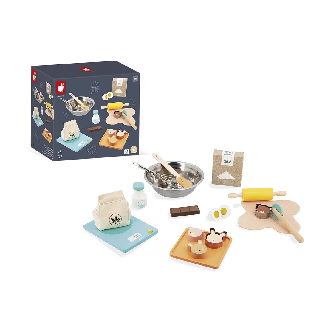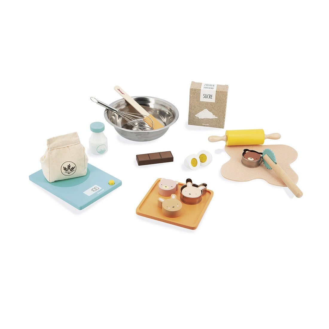 It’s time to make a snack! This baking set will enable your child to become a real little chef! To make great cakes, you need: an egg, some chocolate, some sugar, some milk and some flour, as well as 2 cutters shaped like a rabbit and a bear.