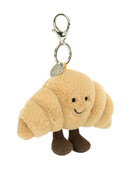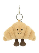 For brunch on the go, clip on the Amuseables Croissant Bag Charm! fluffy and golden, with chocolate cord boots, this embroidered croissant is bakery-fresh! With a silver chain, Jellycat disc and friendly smile, this cheery pastry is délicieux!