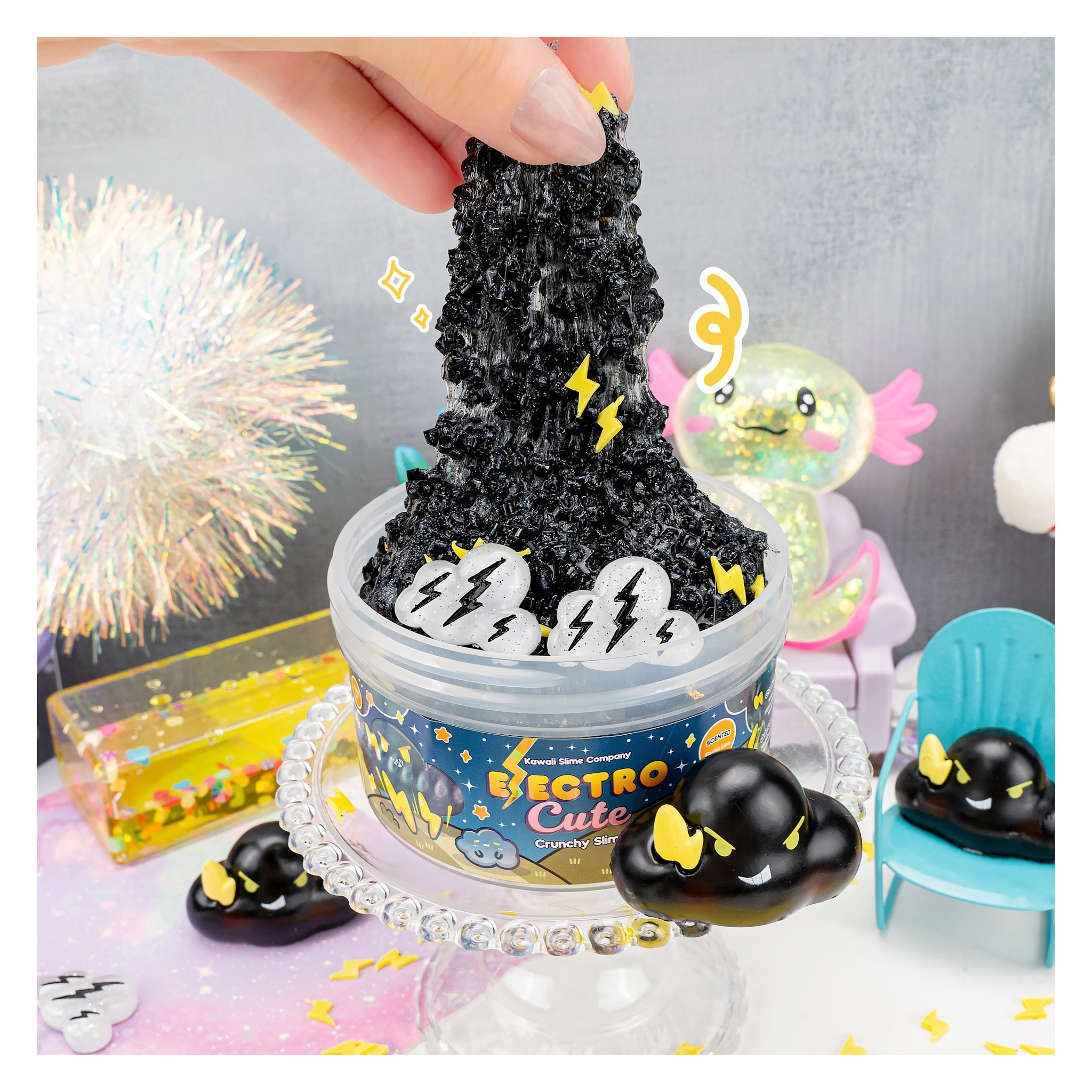 Ever wondered what it’s like to bottle a lightning storm? Now you can with Electro-Cute Slime! This crackly black bingsu texture is packed with satisfying crunch and sparkle, perfect for ASMR lovers and sensory seekers.