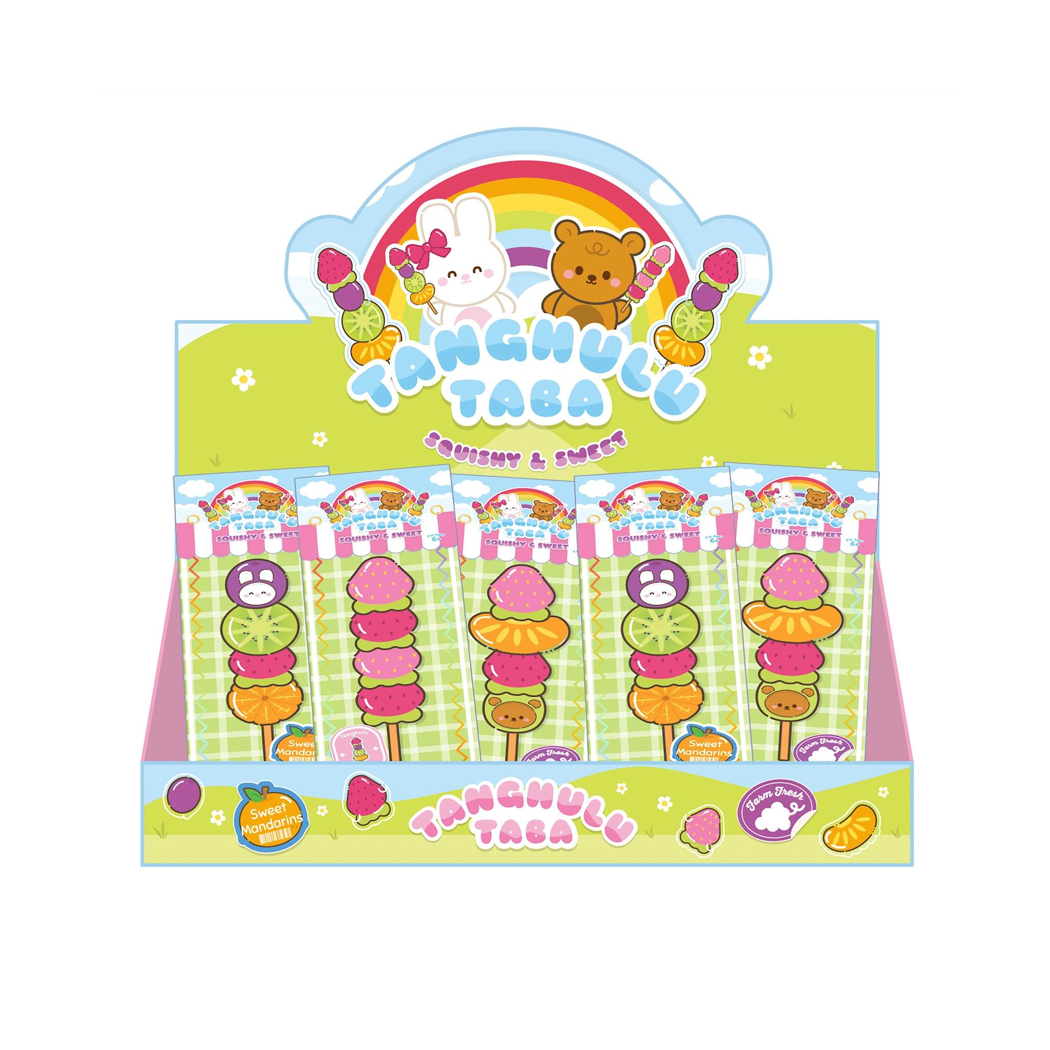 Sweet, colorful, and full of charm, the Tanghulu Taba Sensory Toy brings a playful twist to classic candied fruit! Each design features stacked fruity shapes with cute character details, all in a soft, slow-rising texture that’s as satisfying to squeeze.