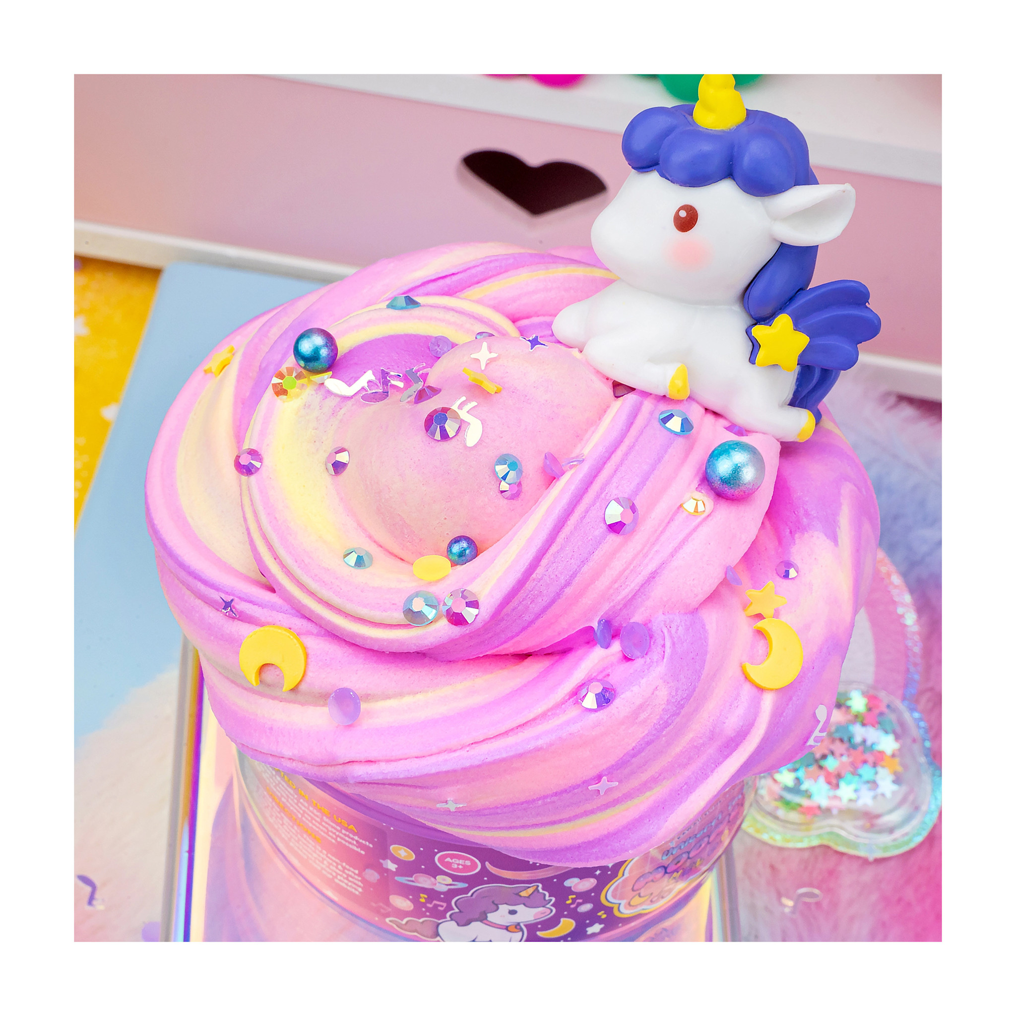 - Each slime includes a whimsical unicorn charm, a sprinkle of crescent moon fimos, and a dreamy mix of starry sprinkles to bring your moonlight fairytale to life.