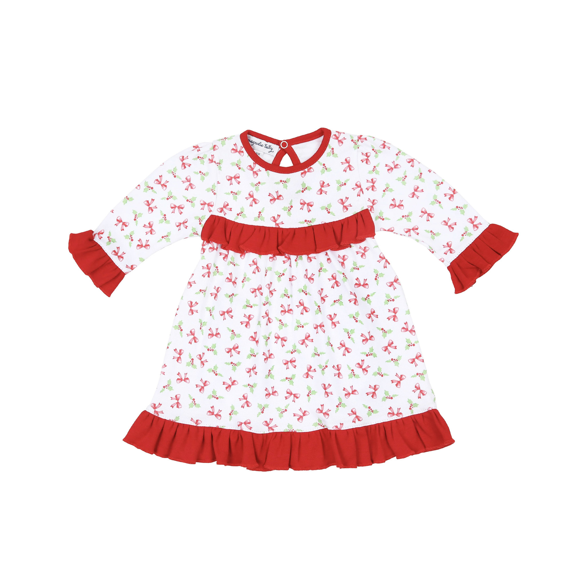 Magnolia Girls Christmas Ruffle Dress.100% Pima Cotton. Made in Peru. Machine Washable.