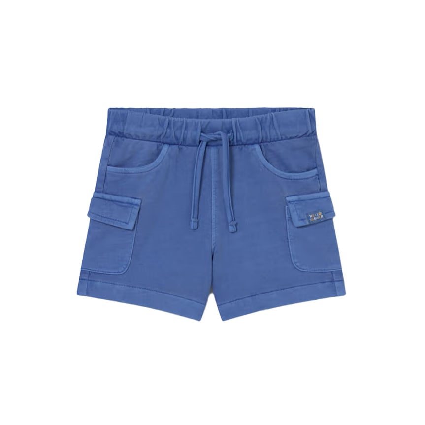 Mayoral baby boys blue cargo shorts, made in soft cotton jersey. Casual and comfortable, they have an elasticated drawstring waistband and pockets. A cute 'hello summer' label is sewn on one of the pockets for a playful finish.