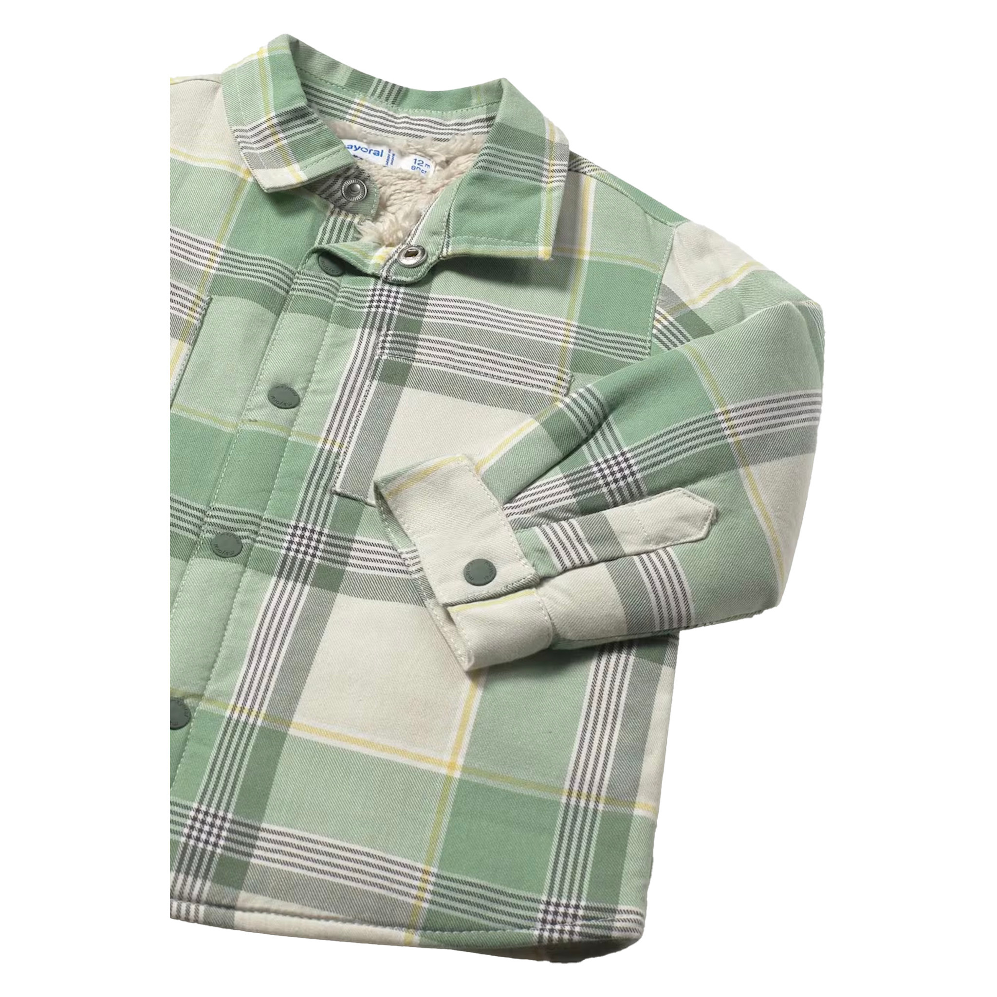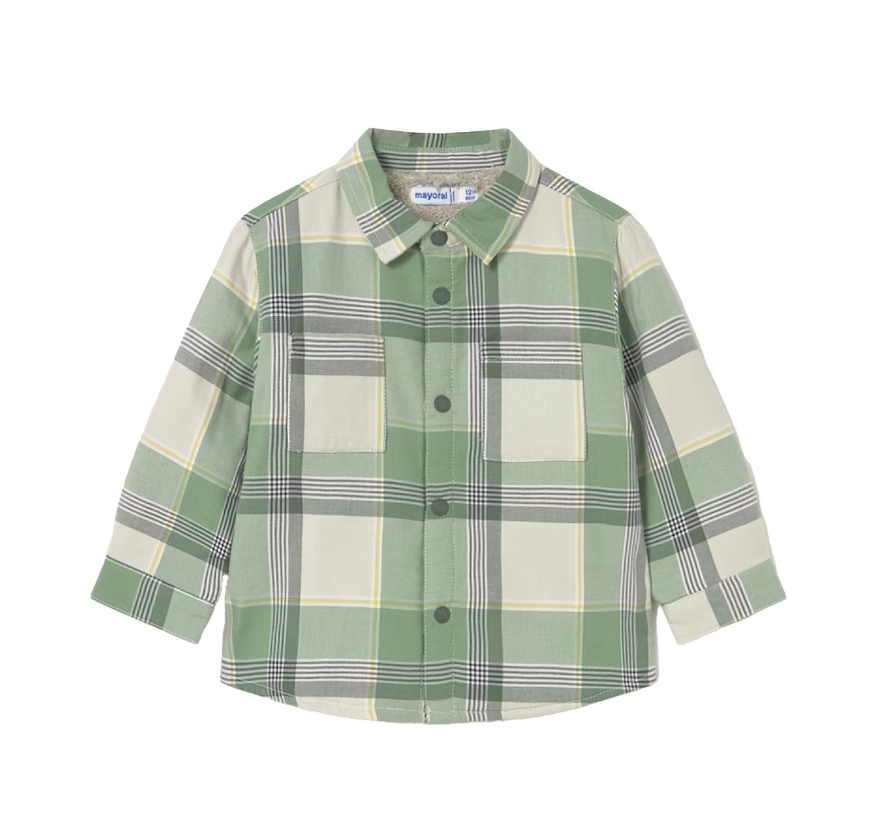 Mayoral Baby Boys long sleeved over-shirt. Shirt collar. Button fastenings down the front. 100% cotton. Soft polyester inner lining. Functional front pockets. Checked pattern.