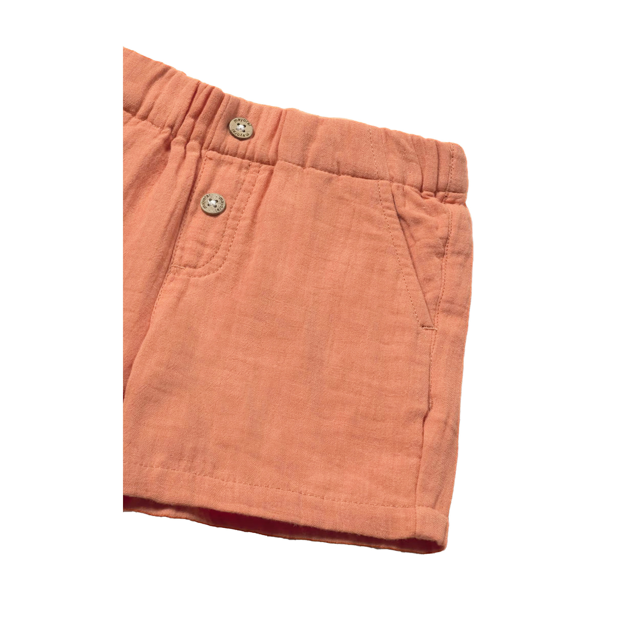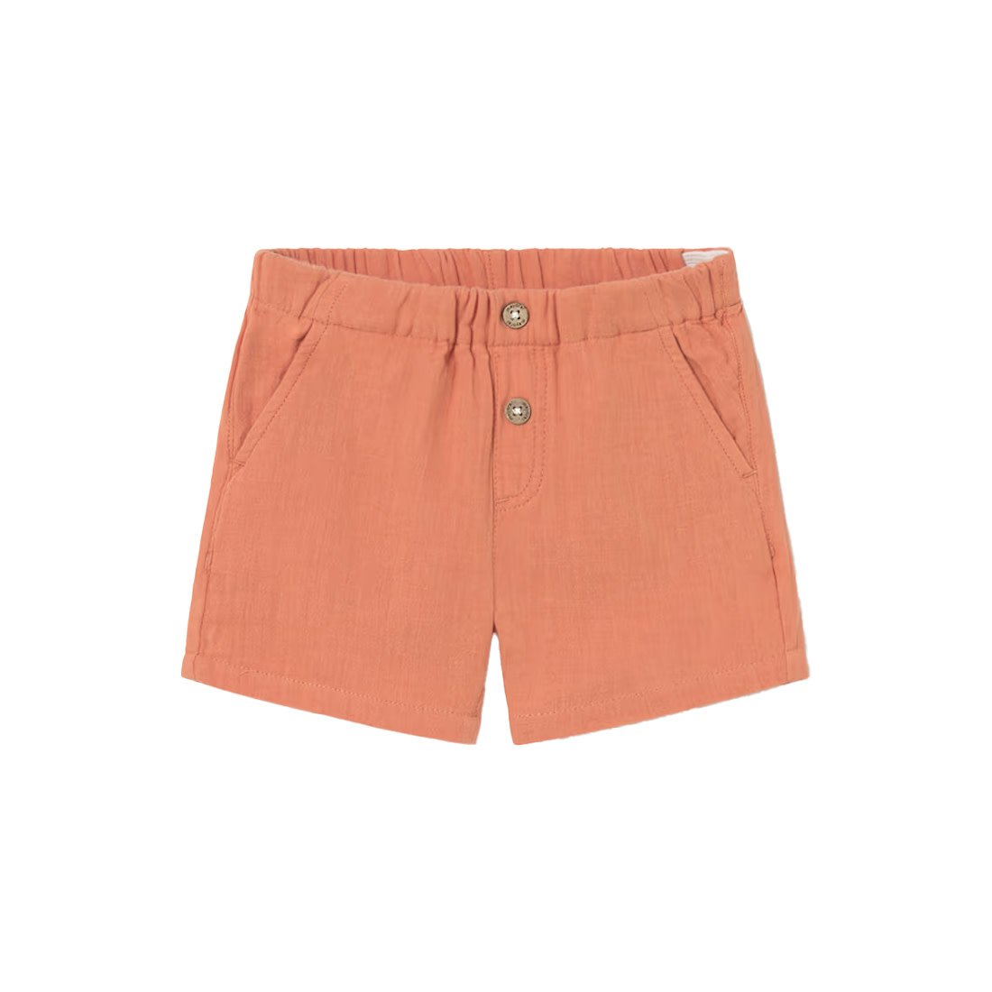 Mayoral baby boys orange shorts are made in soft and lightweight cotton muslin. They have useful pockets on the front and back. The elasticated waistband is adjustable for an ideal fit.