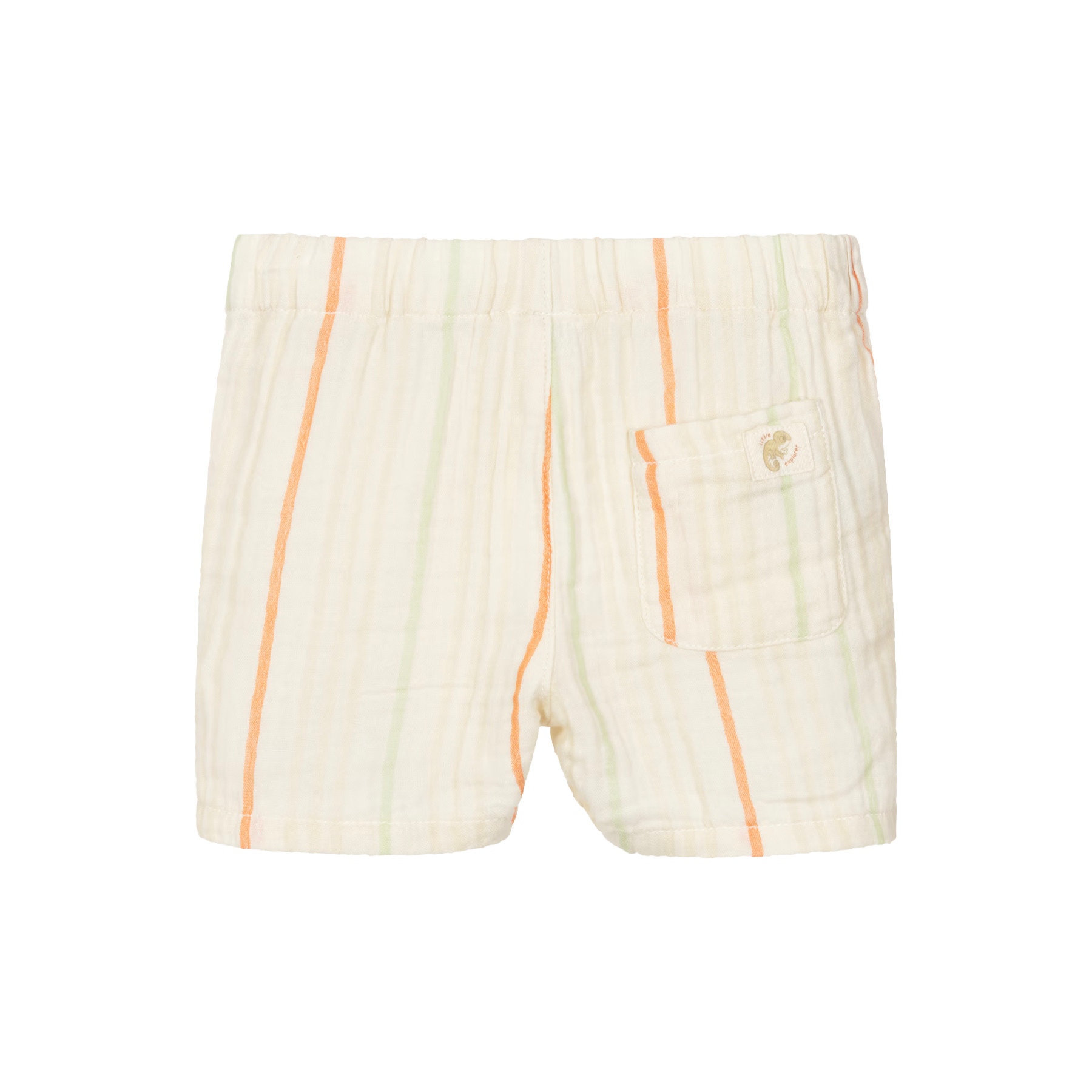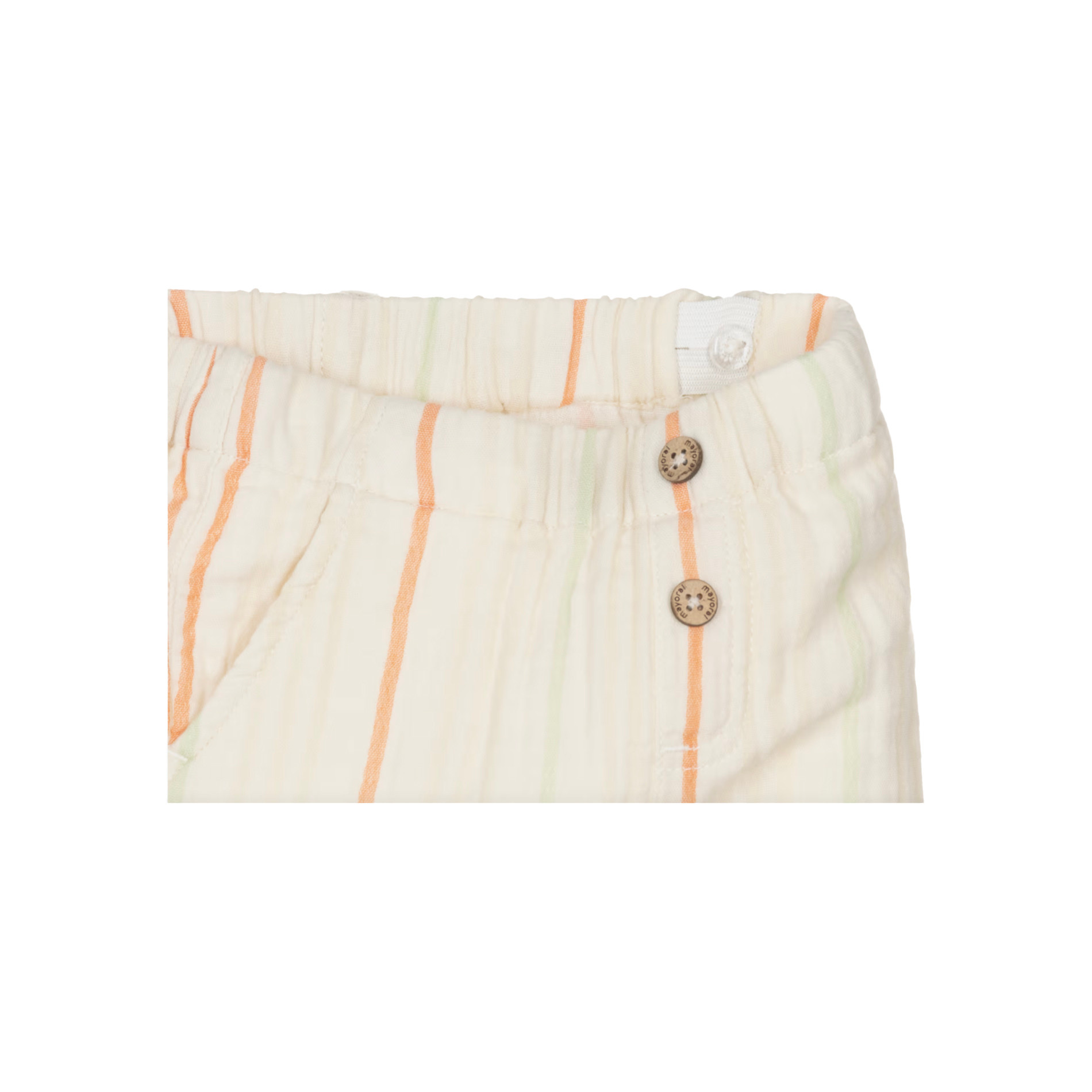 Mayoral baby boys beige shorts are made in soft and lightweight cotton muslin. Featuring a stylish muted orange-and-green stripe pattern, they have useful pockets on the front and back. The elasticated waistband is adjustable for an ideal fit.