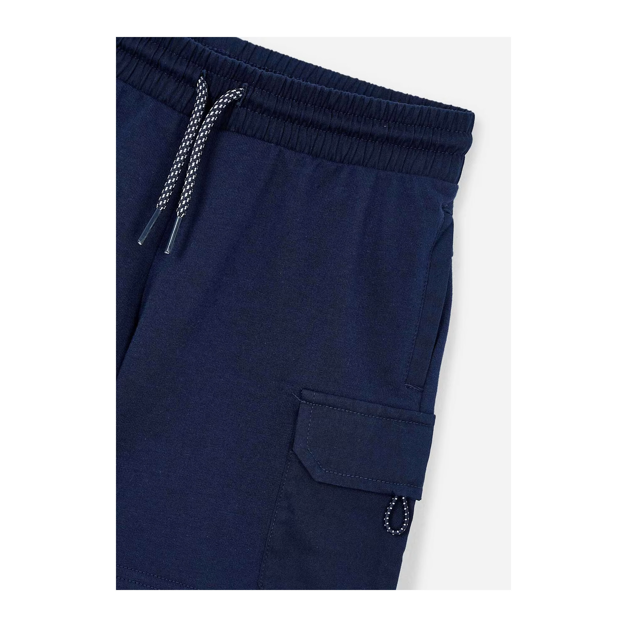 Mayoral boys navy shorts, made in smooth and lightweight cotton poplin. Comfortable to wear, they have a stretchy ribbed waistband with a drawstring tie to adjust the fit. They feature four pockets, including velcro-fastening flap cargo pockets.