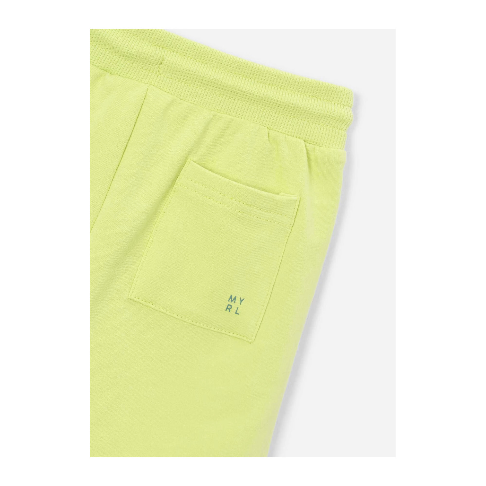 Mayoral boys neon yellow shorts, made in soft, stretchy cotton jersey. These casual shorts have a drawstring waist for a comfortable fit and slanted front pockets. The back patch pocket is printed with a tonal logo for a subtle designer finish.