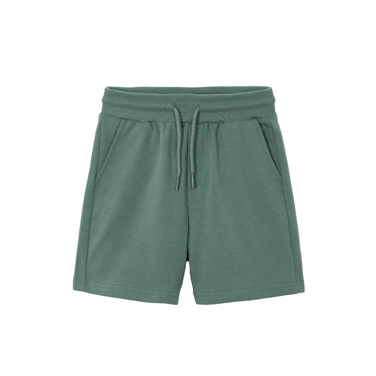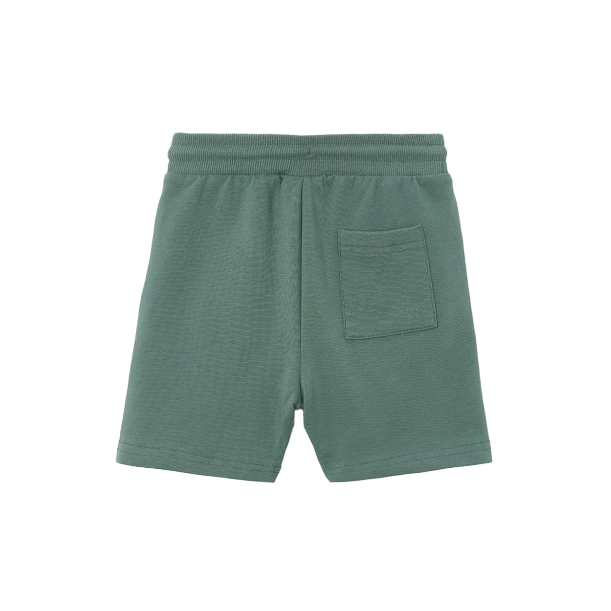 Mayoral boys green shorts, made in soft, stretchy cotton jersey. These casual shorts have a drawstring waist for a comfortable fit and slanted front pockets. The back patch pocket is printed with a tonal logo for a subtle designer finish.