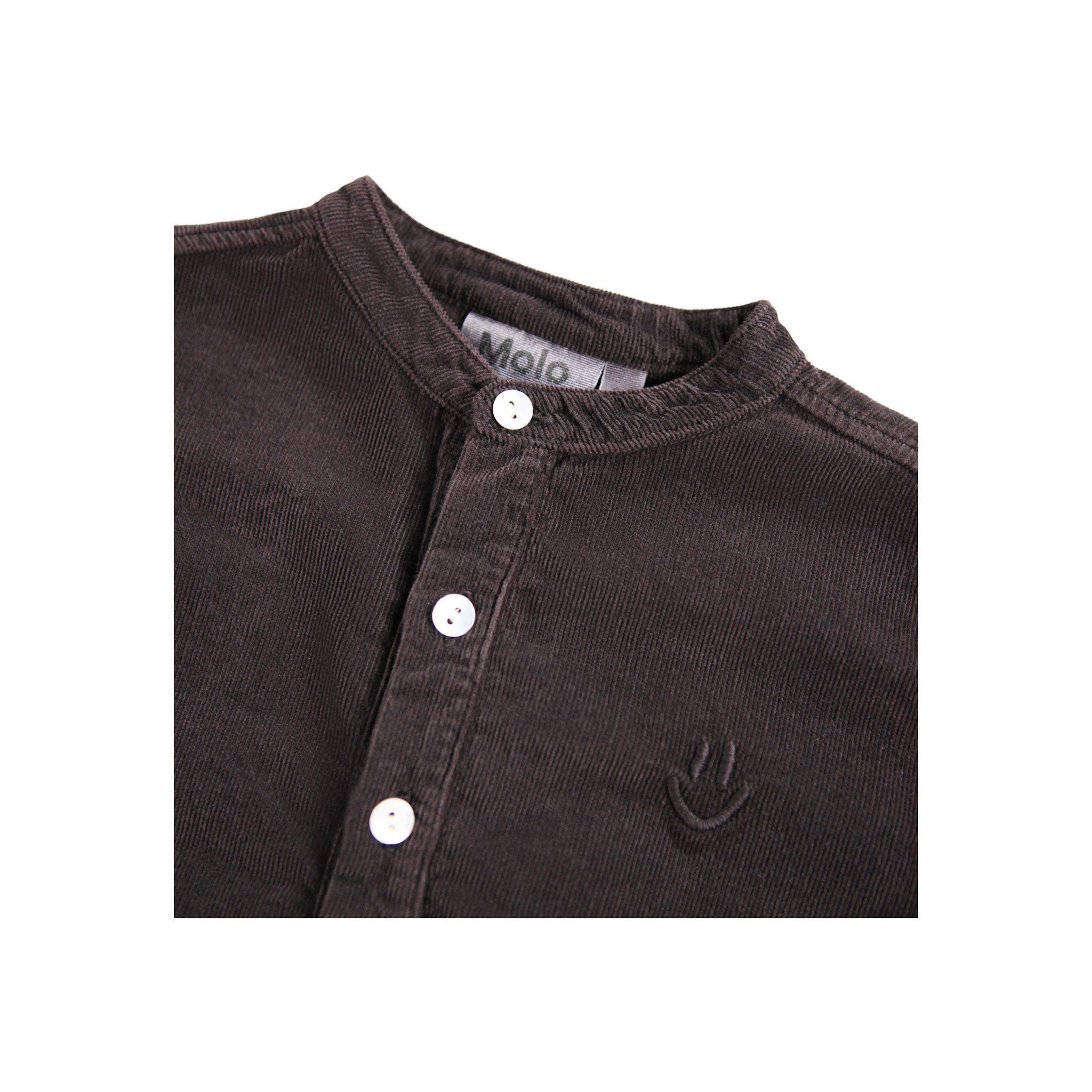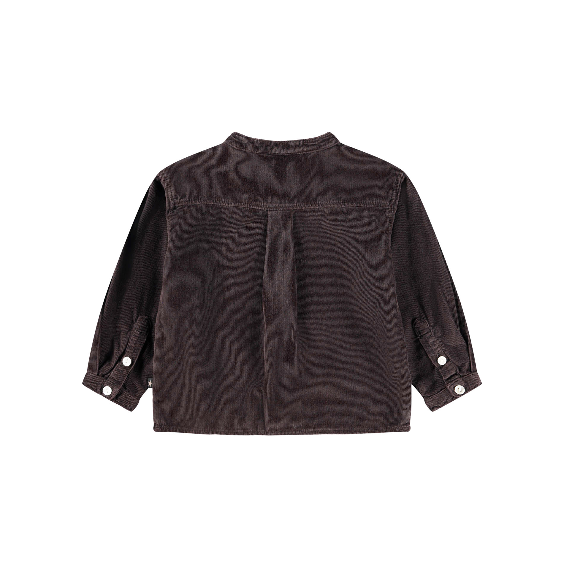Dark Brown velvet shirt for the little ones made of 100% organic cotton. The shirt has a mandarin collar and a button placket with three white buttons, and a smiley face. The loose fit makes it comfortable to wear and easy to put on and take off.