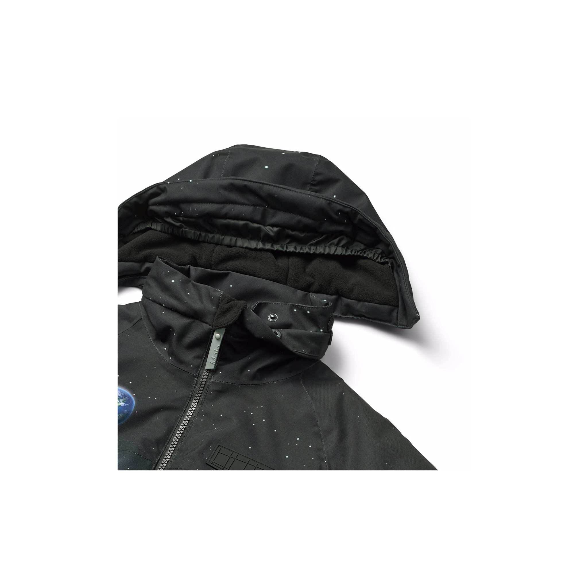 - Detachable hood lined with fleece.