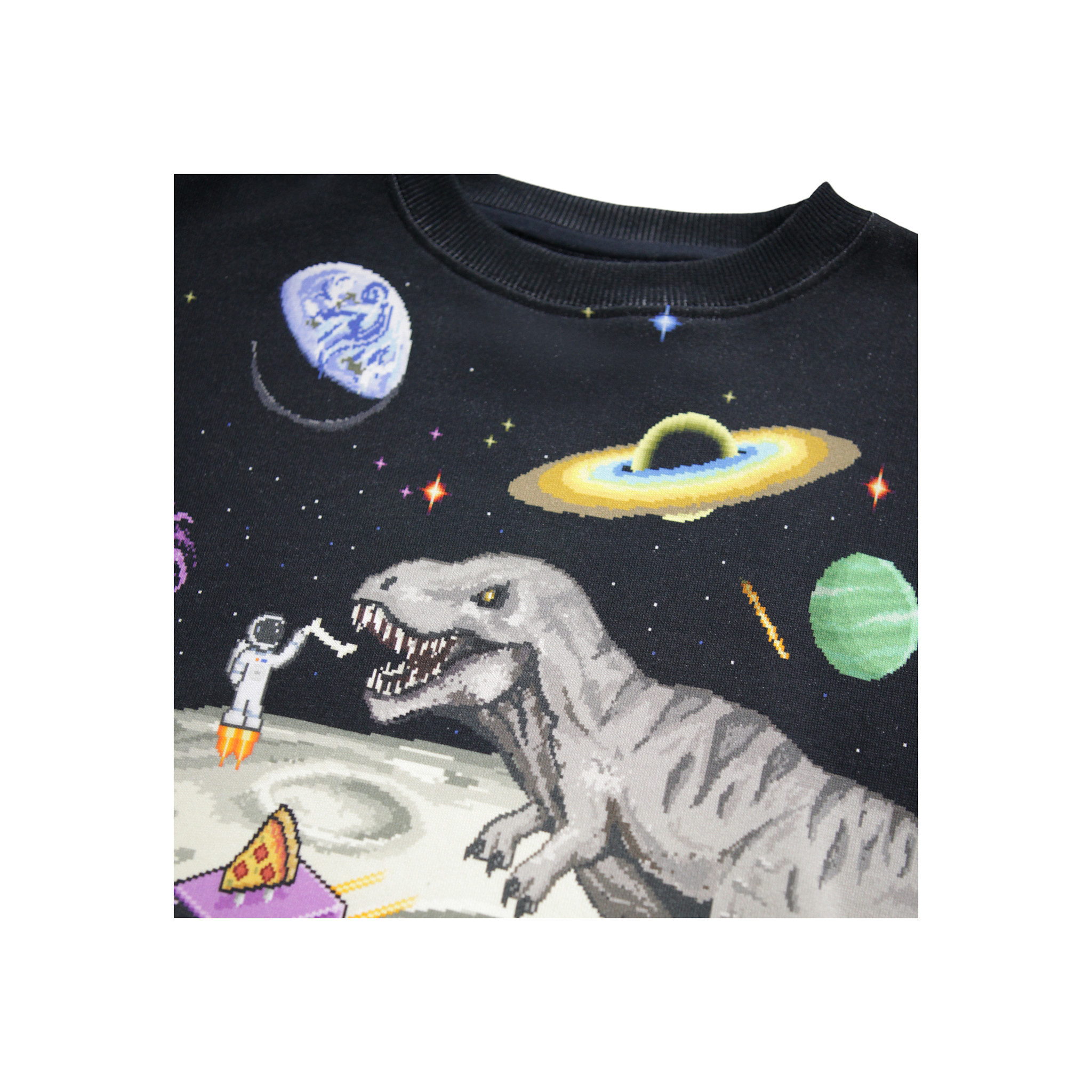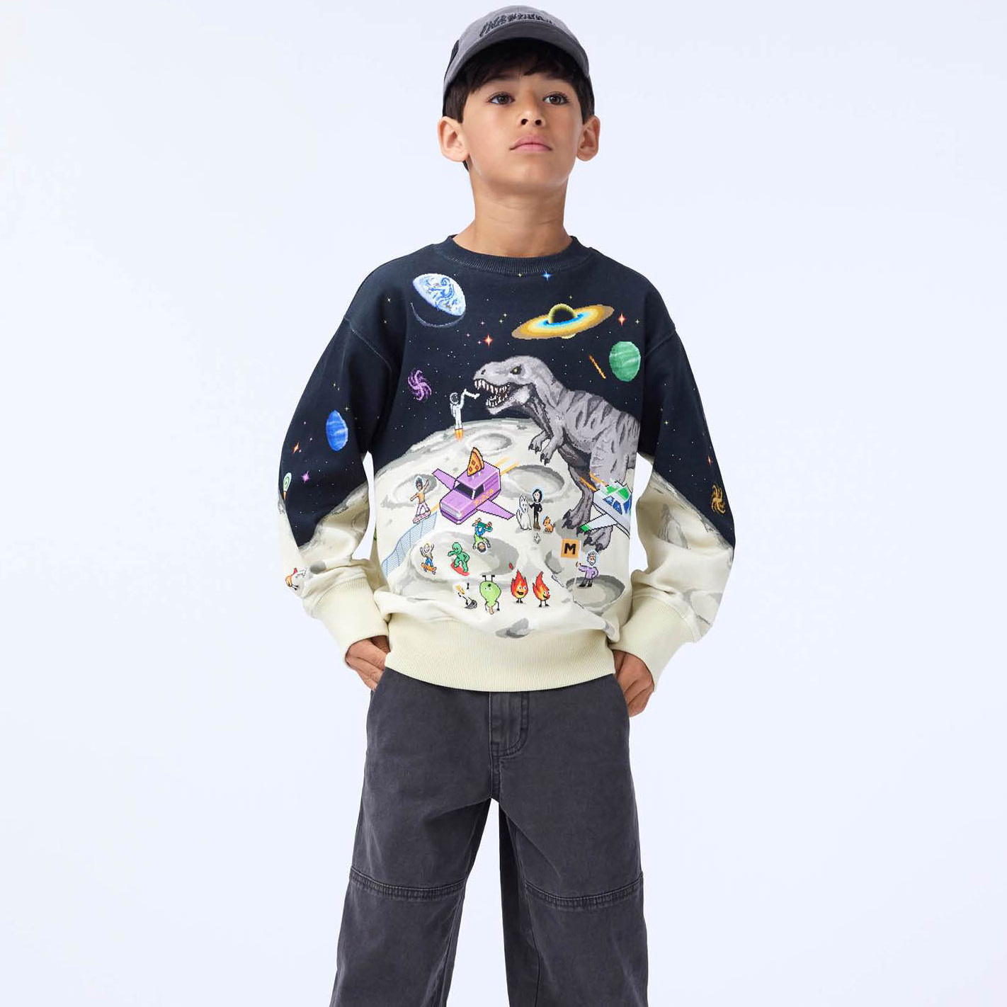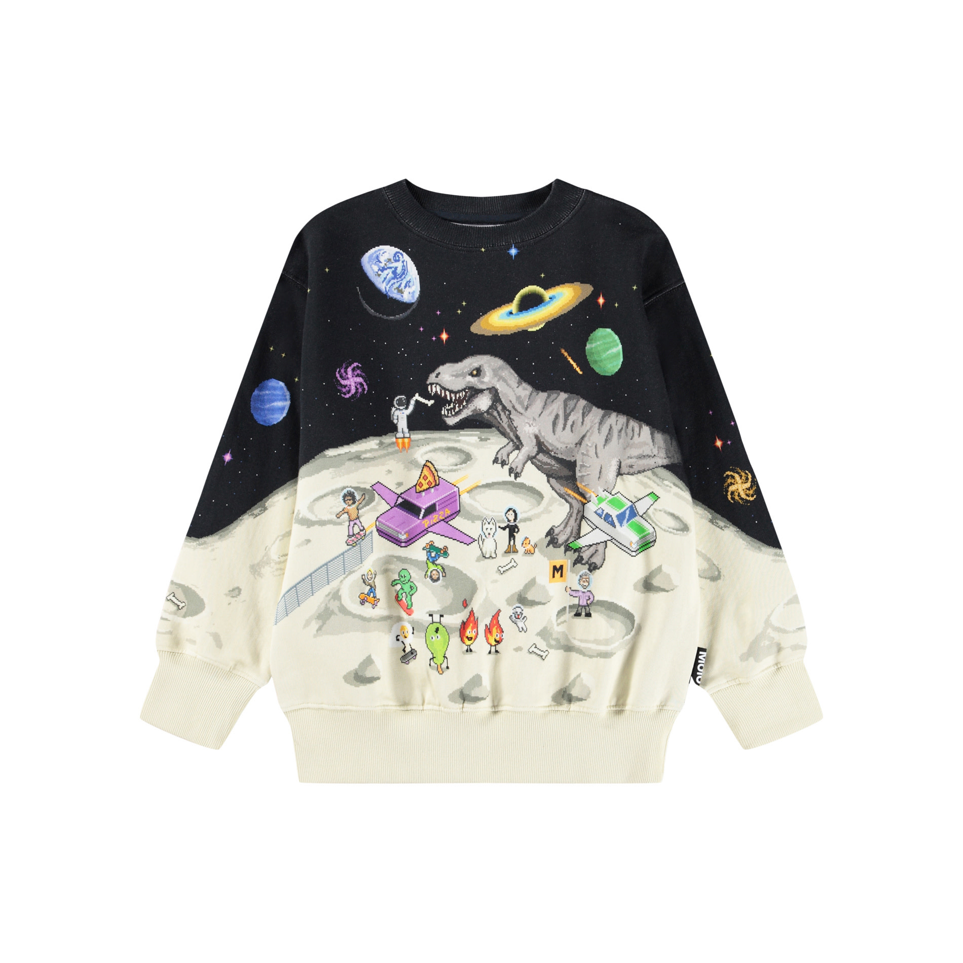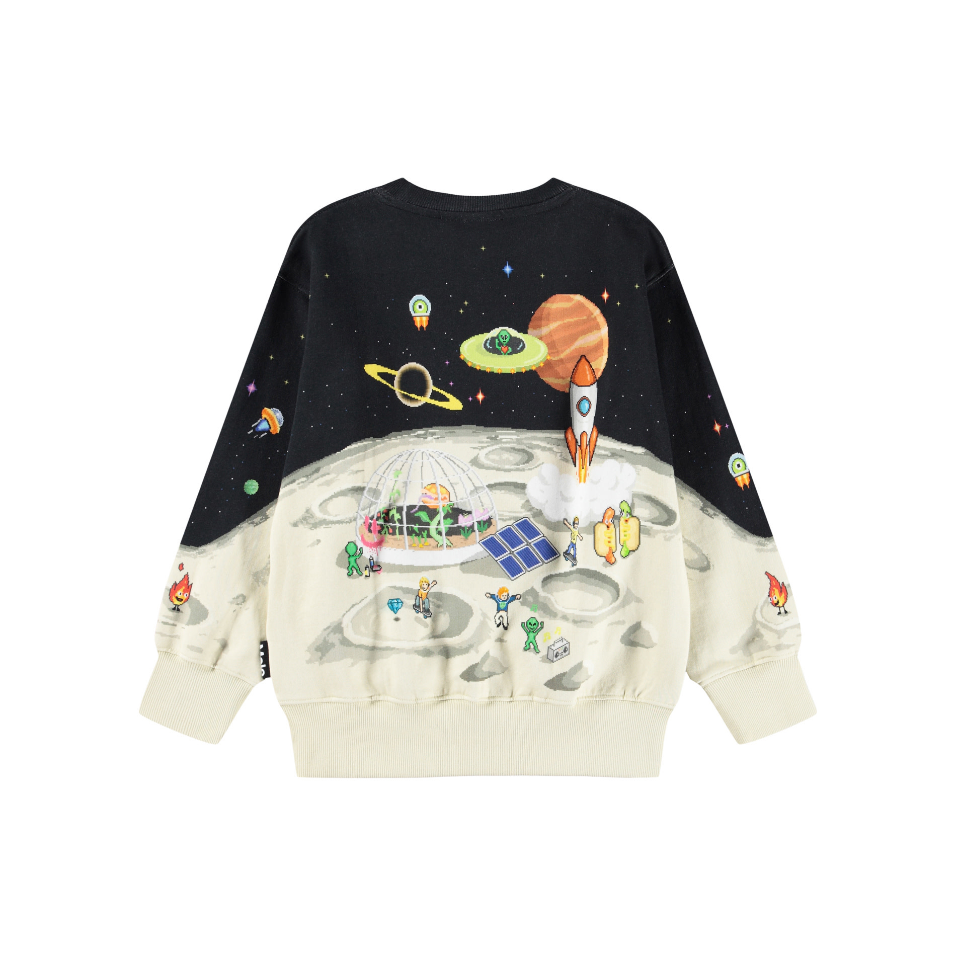 Colorful sweatshirt made of soft 100% organic cotton with ribbed edges around the neck, sleeves and waist. The sweatshirt has a regular fit and a pixelated computer-inspired print of the moon.