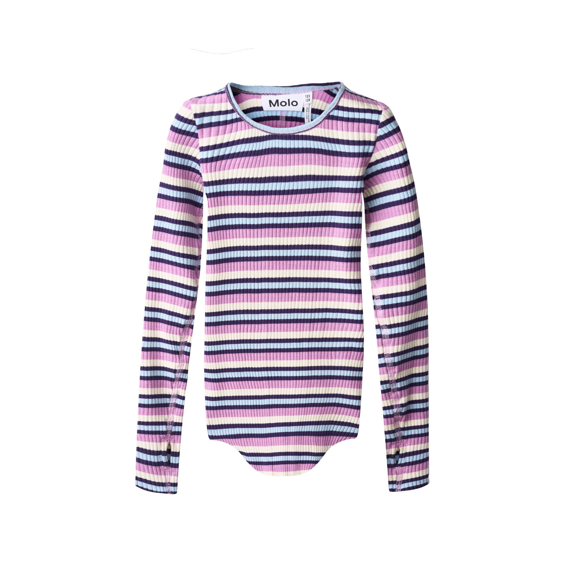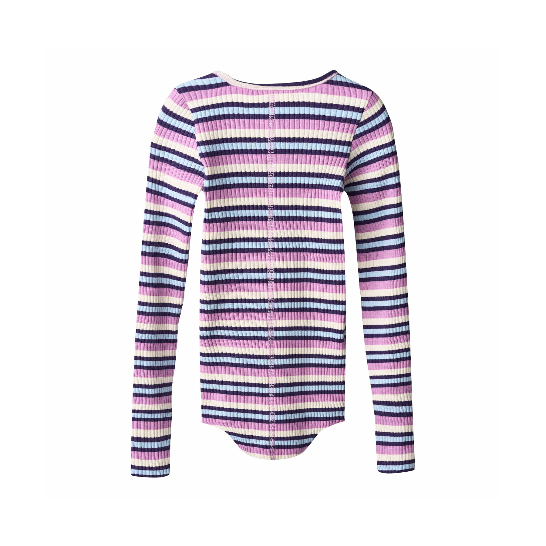 Long-sleeved striped top made of stretchy, organic cotton rib with a close-fitting cut, a round neckline and raw edges on both sleeves with thumb holes. 95% Organic cotton/ 5% Elastane.