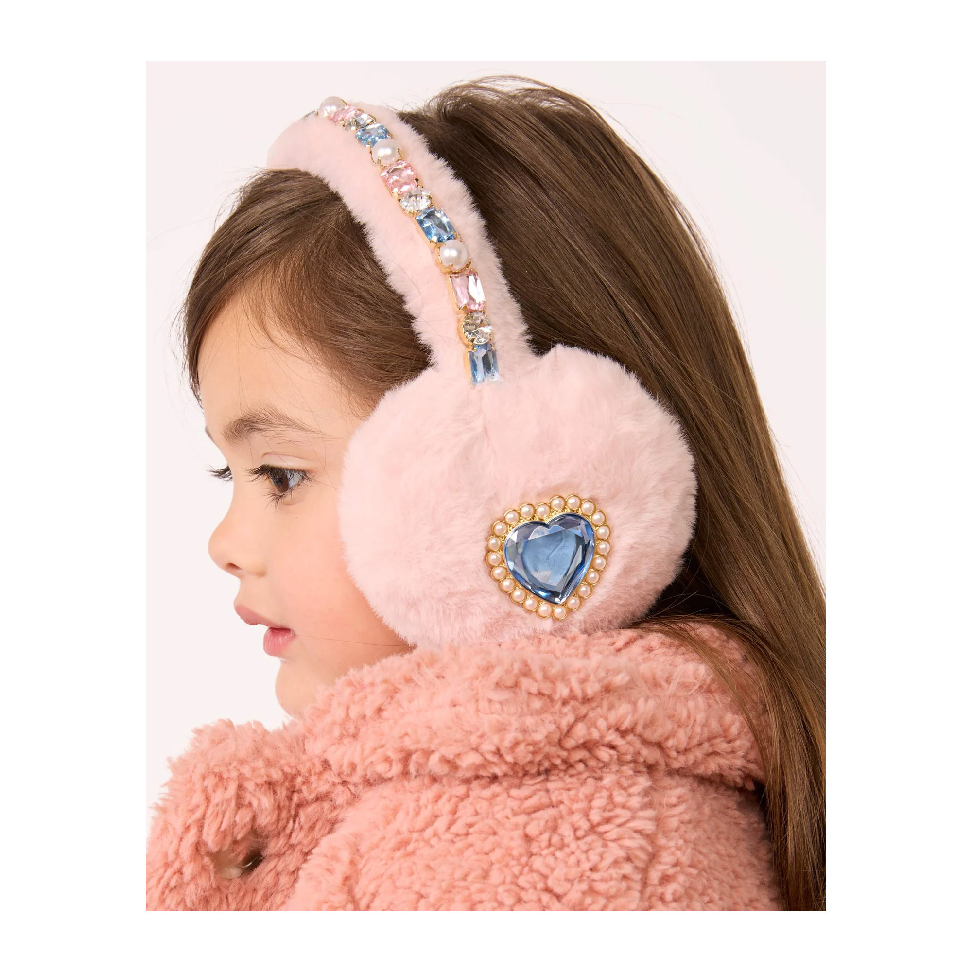 - Features sparkling heart-shaped gems along headband and on earmuffs for a fun, stylish touch