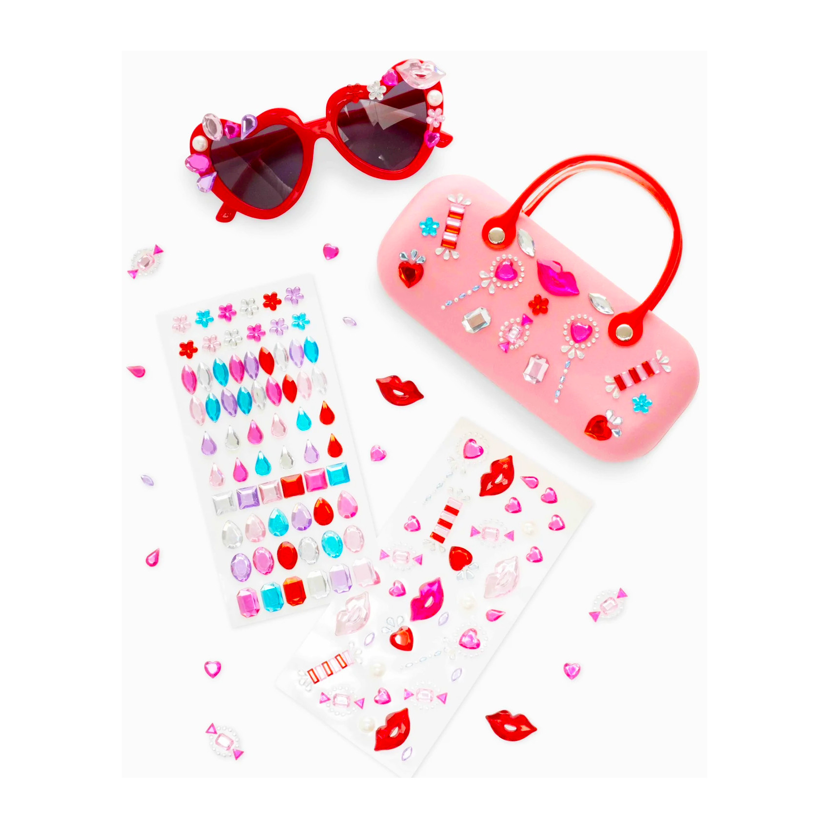 - Features 100+ heart, lip, and candy-themed gem stickers for customizing and decorating