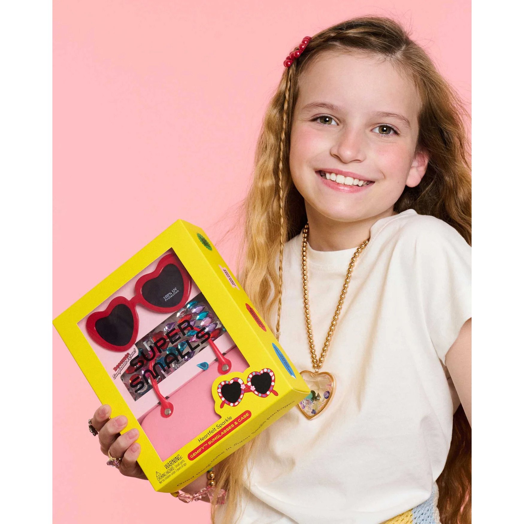 Create an account- Includes UVA/UVB protective red sunglasses and a pink-and-red carrying case