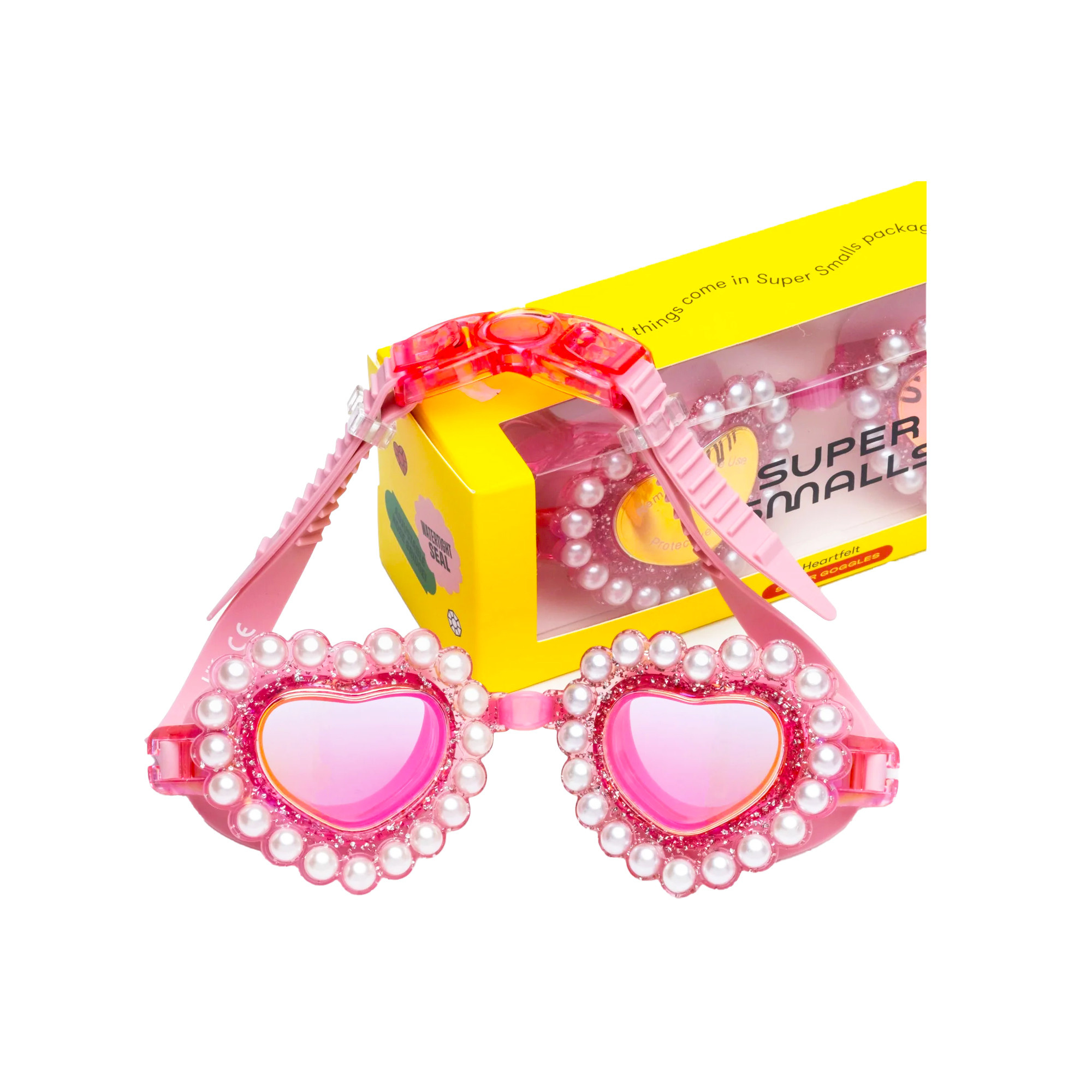 Get ready for serious heart eyes! The Heartfelt Super Goggles are bringing the love to swim time with heart-shaped lenses framed by sweet pearls and sparkles that make every dive feel like a dream.