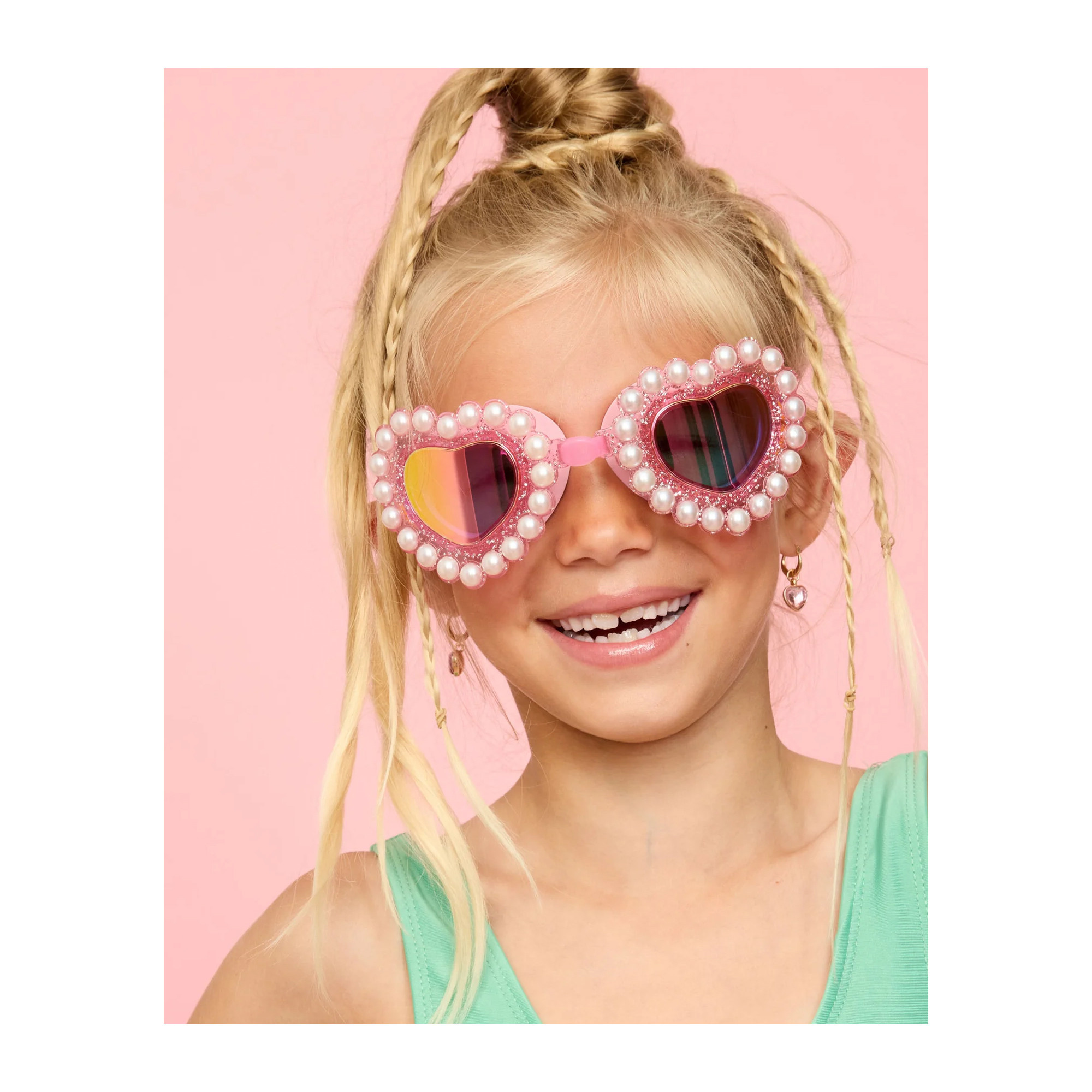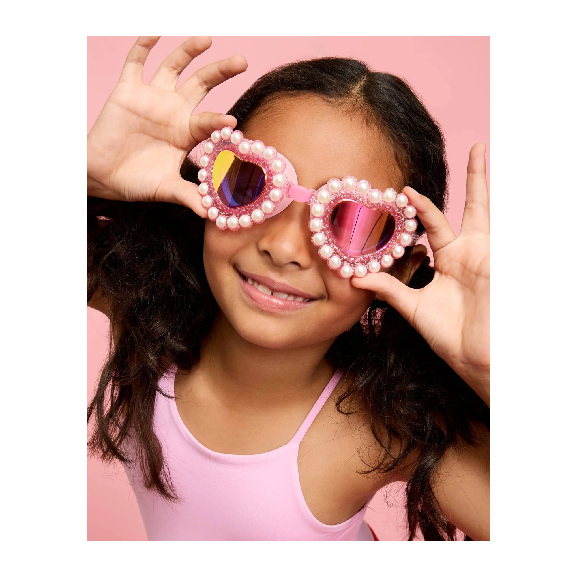 • Heart-shaped lenses framed with pearls and sparkles for extra fun