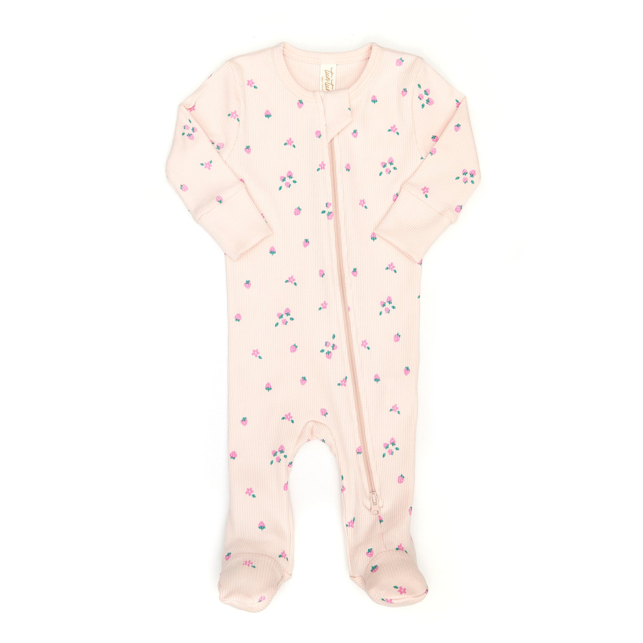 Zip Ribbed Footie - Pink Strawberries