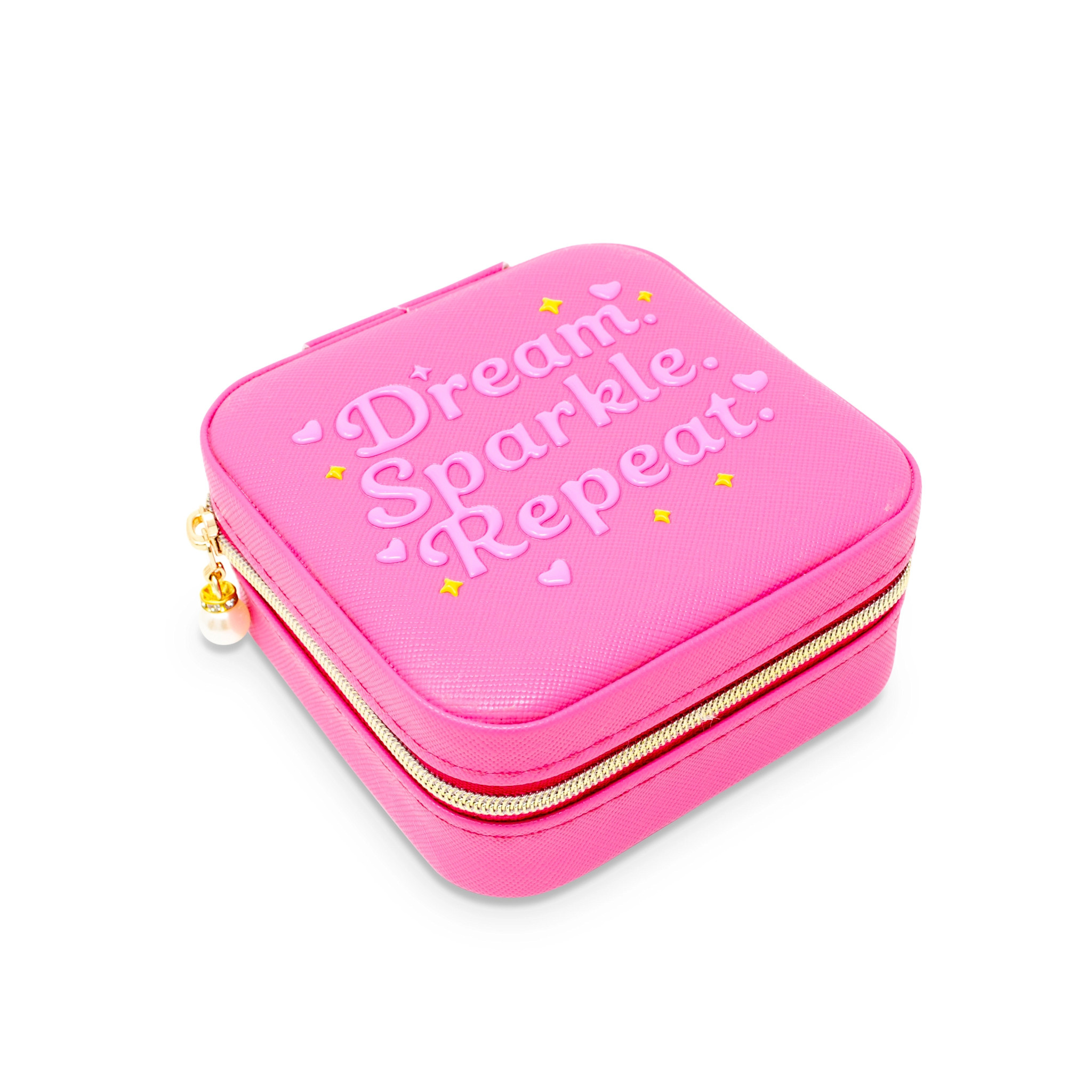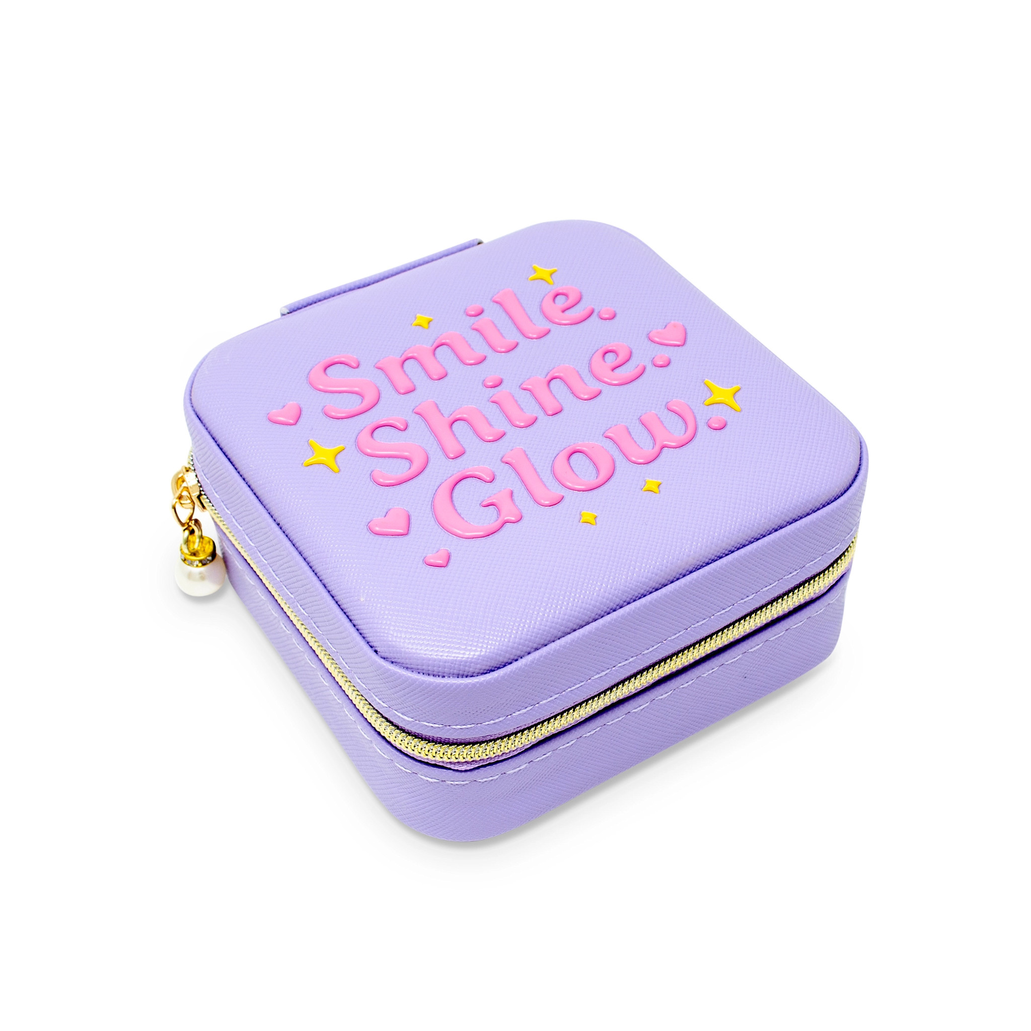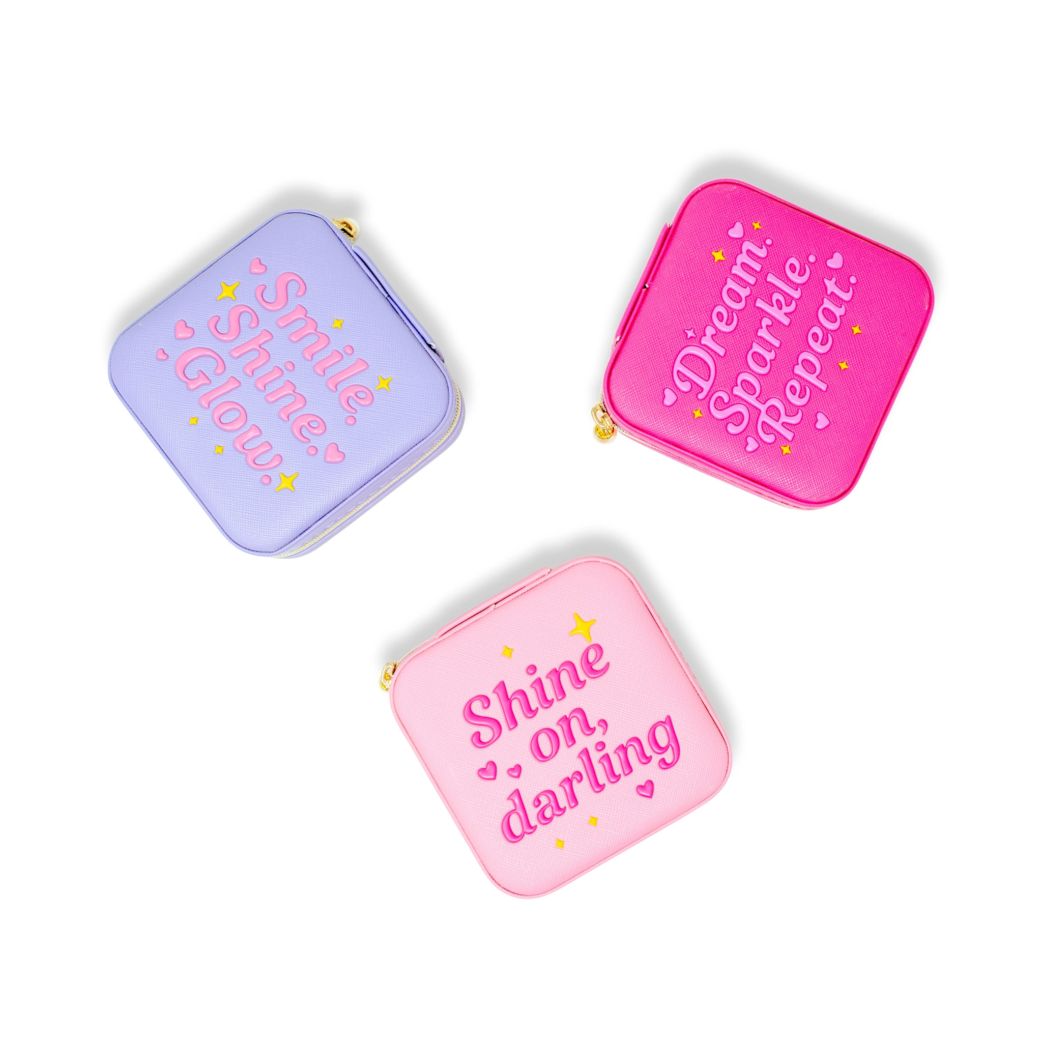 Keep your favorite treasures safe in these chic and colorful travel jewelry boxes. Each box is designed with a durable faux leather exterior, finished with a gold zipper and pearl charm pull, and features a bold 3D embossed print that pops.